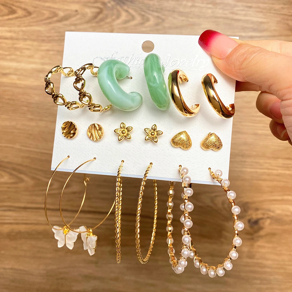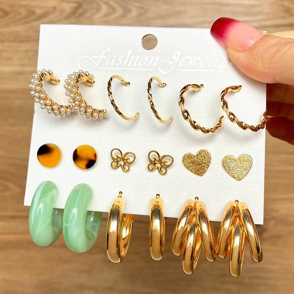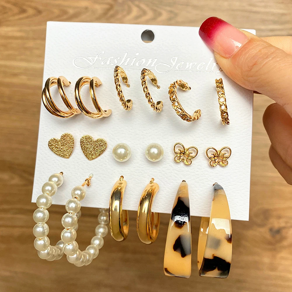 EN Модный жемчужный обруч Комплект сережек для женщин геометрически...