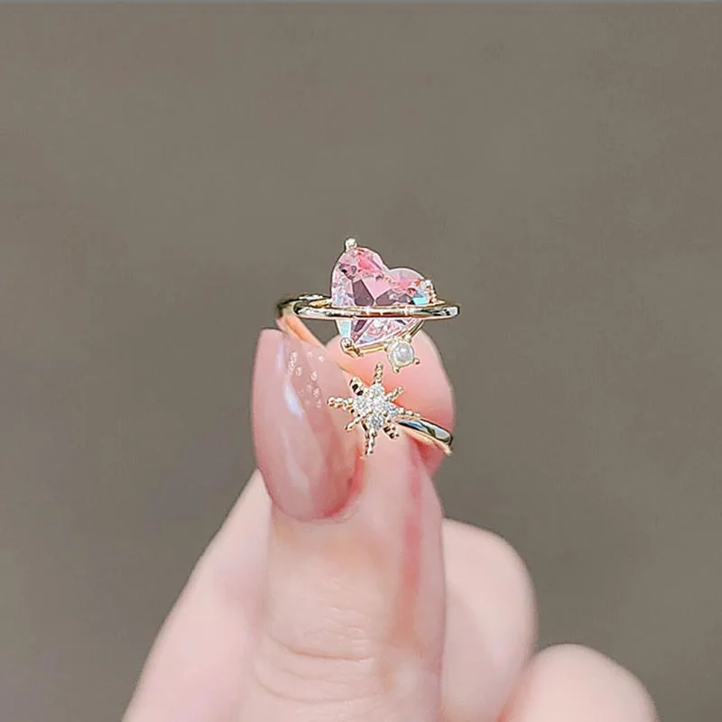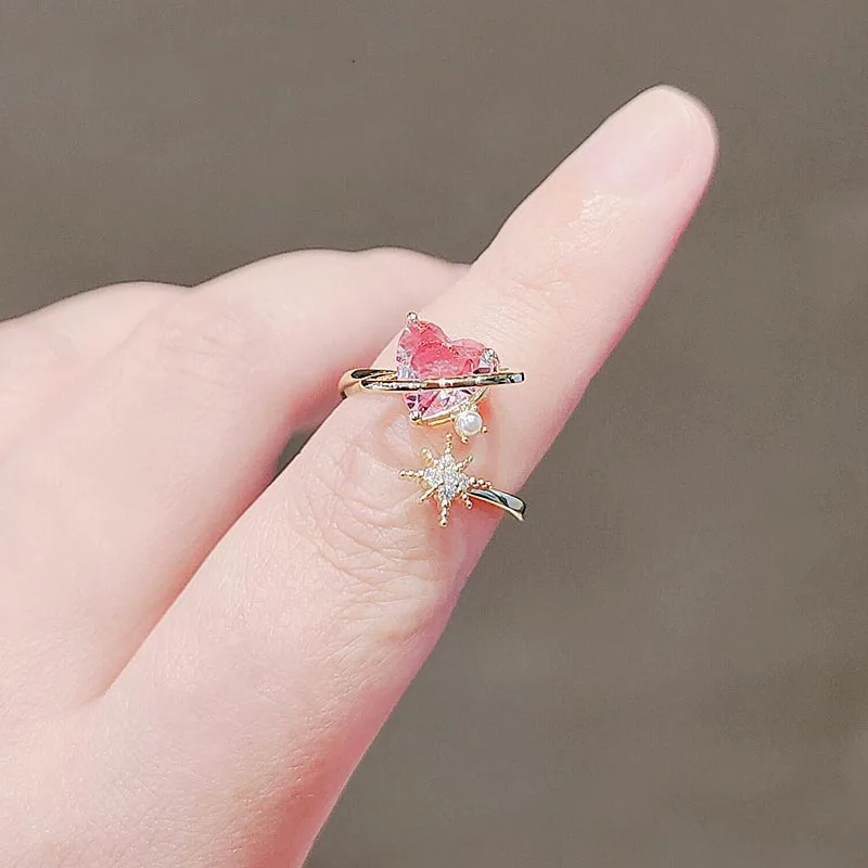 Женское кольцо с кристаллами, регулируемое кольцо в форме сердца с блестящими звездами, украшение для вечеринки, 2022