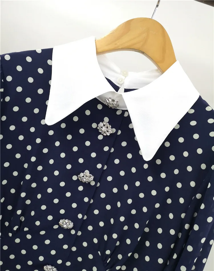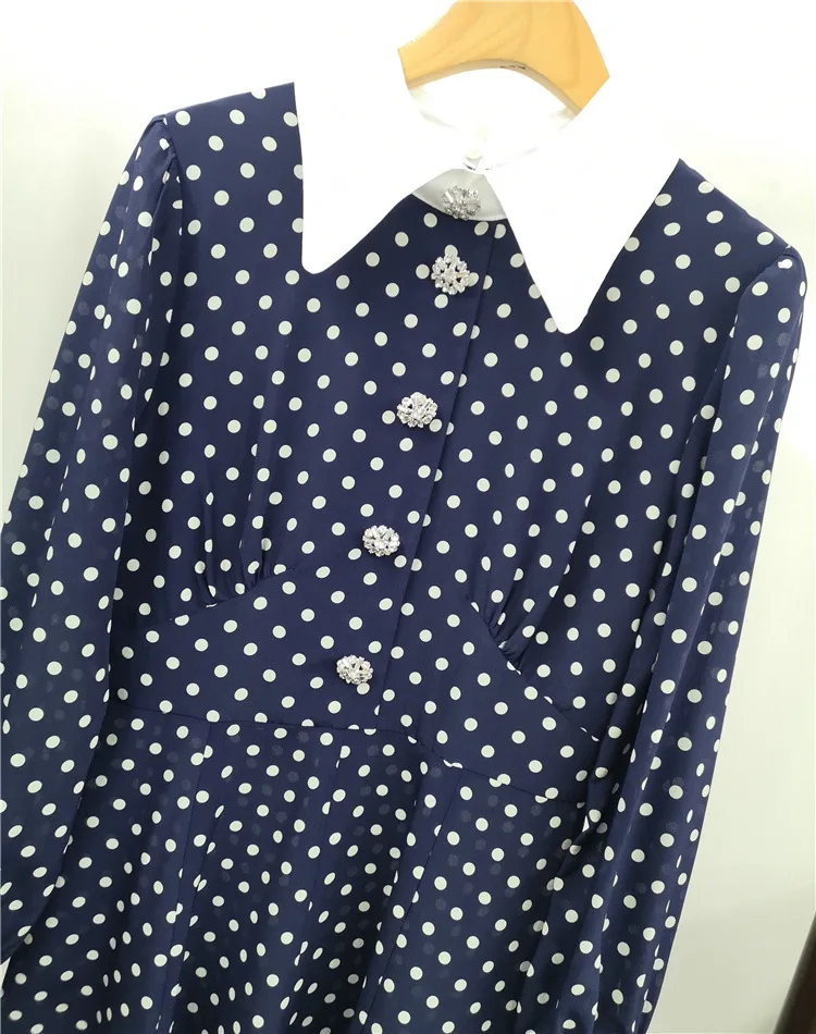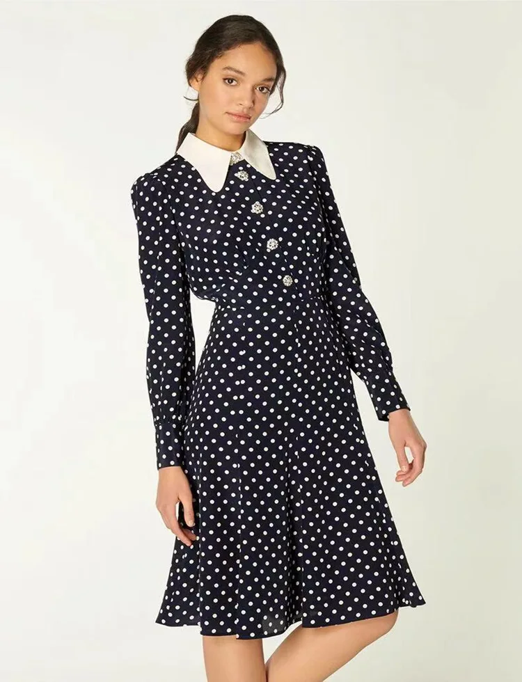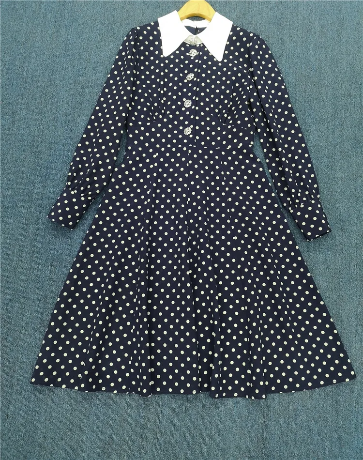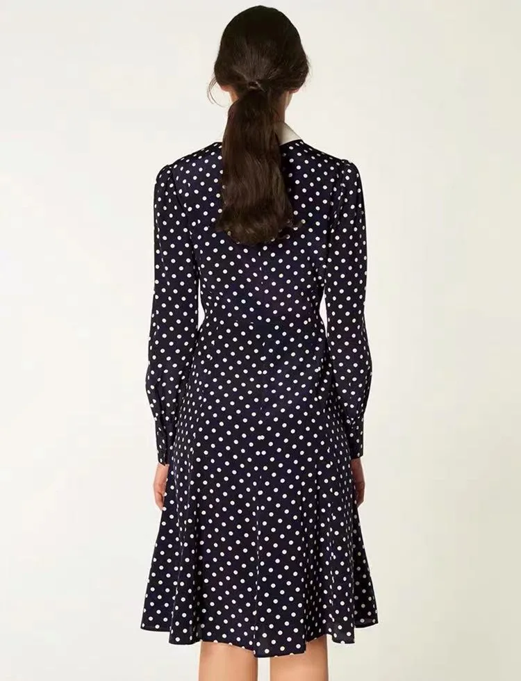 Женское платье в горошек из шелка тутового шелкопряда, новинка весны 2022, в стиле Хепберн, темпераментная Талия, тоньше, воротник поло