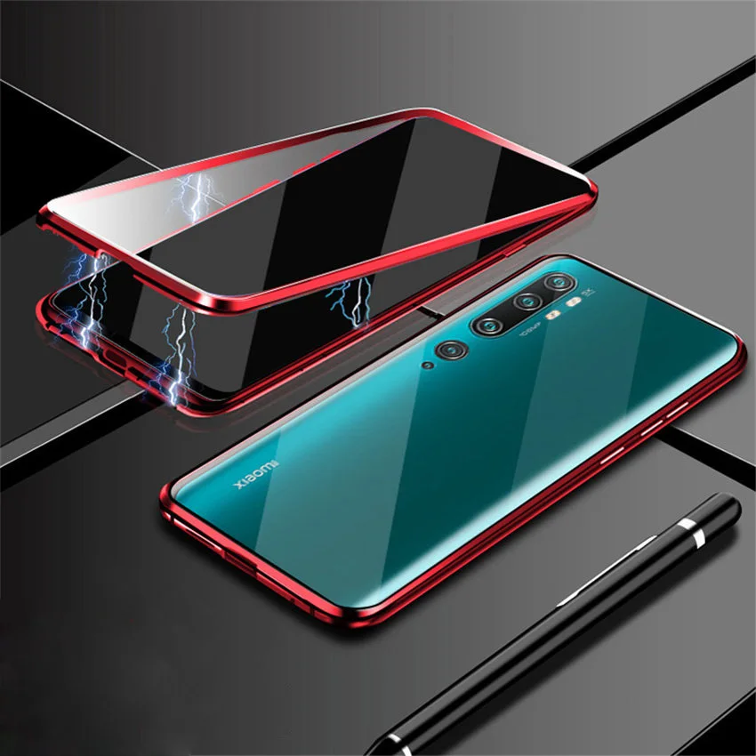Двухсторонний Магнитный поглощающий металлический чехол для телефона Xiaomi Mi Note 10 Lite Note 10 Pro, полное покрытие, переднее и заднее стекло
