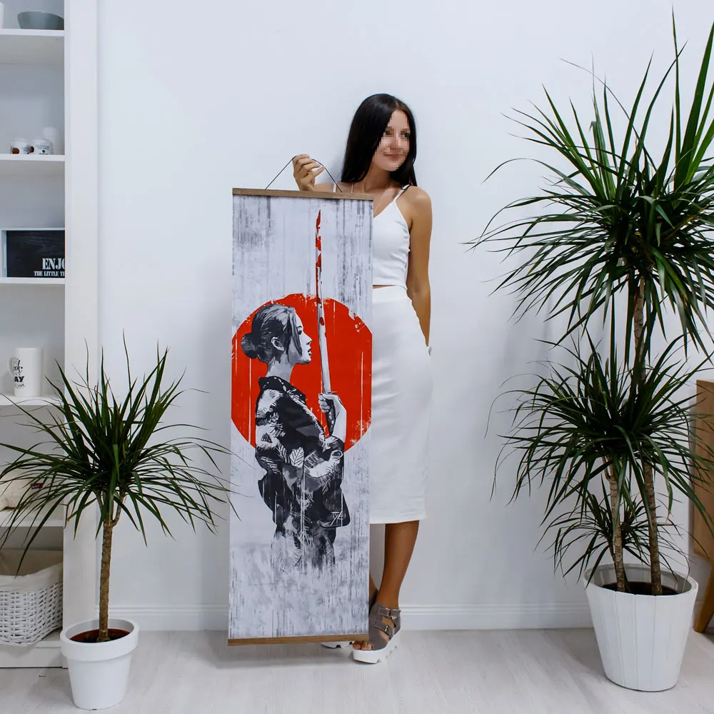 Плакат и принты на холсте самурая Ukiyoe, украшение для стен, домашний декор с подвесным свитчем из массива дерева