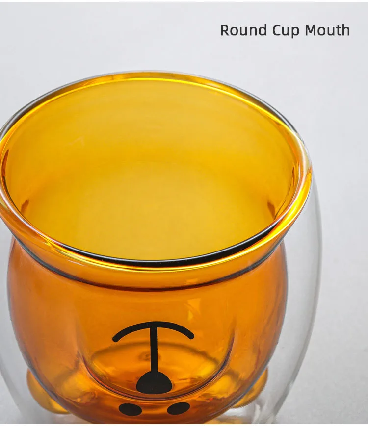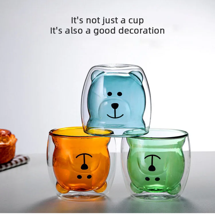 Милые стеклянные кружки в форме медведя с двойными стенками, чашка для чая с защитой от ожогов, детская посуда для напитков, милая кофейная кружка в подарок для любимого ребенка