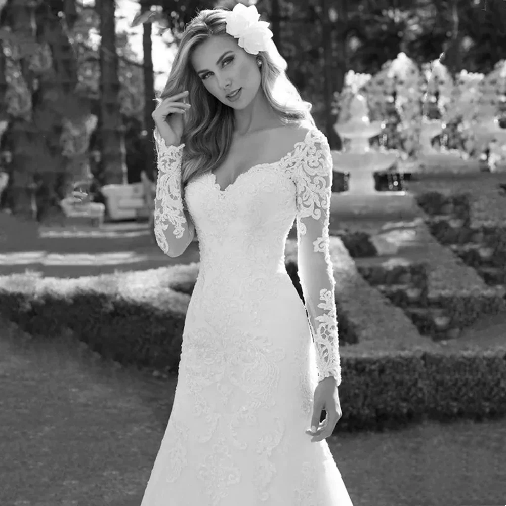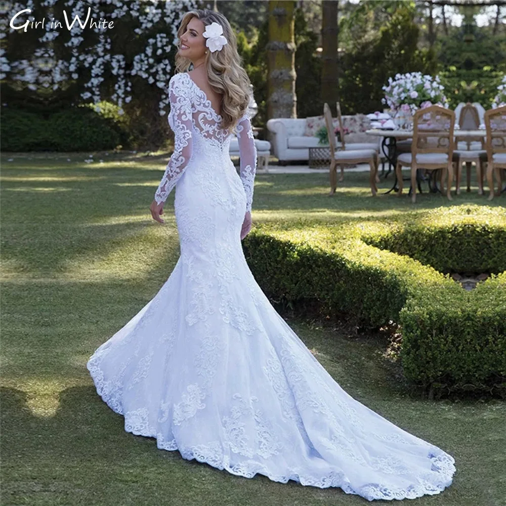 Женское свадебное платье с юбкой годе, кружевное платье с длинными рукавами и аппликацией на спине, платье невесты в африканском стиле, 2022
