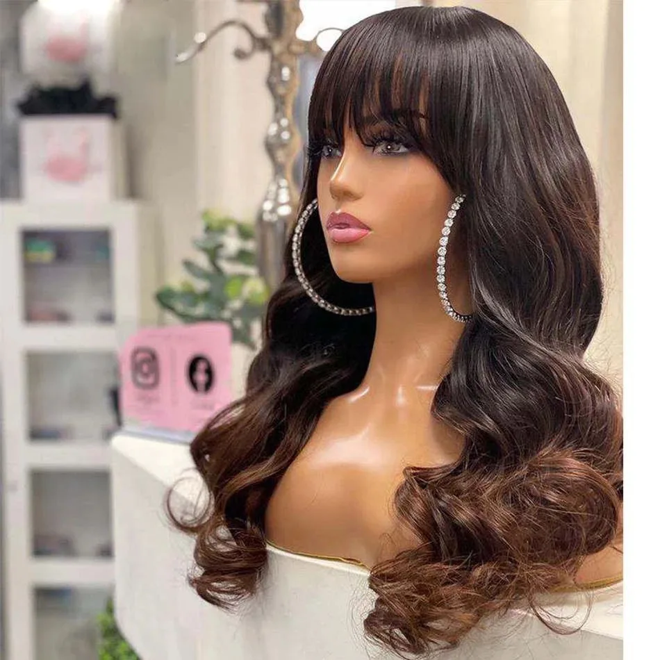 Парики с бахромой Омбре темно-коричневые волнистые 360 HD парики на сетке с челкой шоколадно-коричневые неповрежденные человеческие волосы свободные волнистые 200 плотность