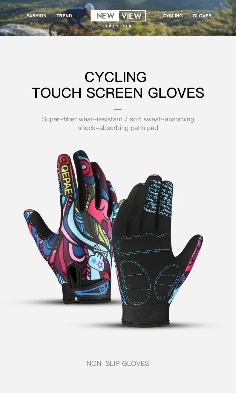 Оптовая продажа, велосипедные перчатки с принтом, велосипедные спортивные перчатки с полным пальцем, перчатки для пешего туризма, гелевые Зимние перчатки для женщин
