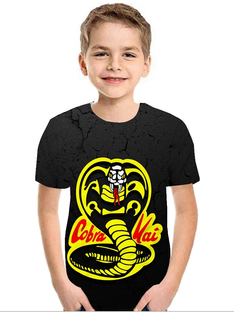 Кобра Кай, 3D футболка, детская одежда, футболка для мальчиков и девочек, повседневная детская одежда, модная футболка, интересный короткий рукав
