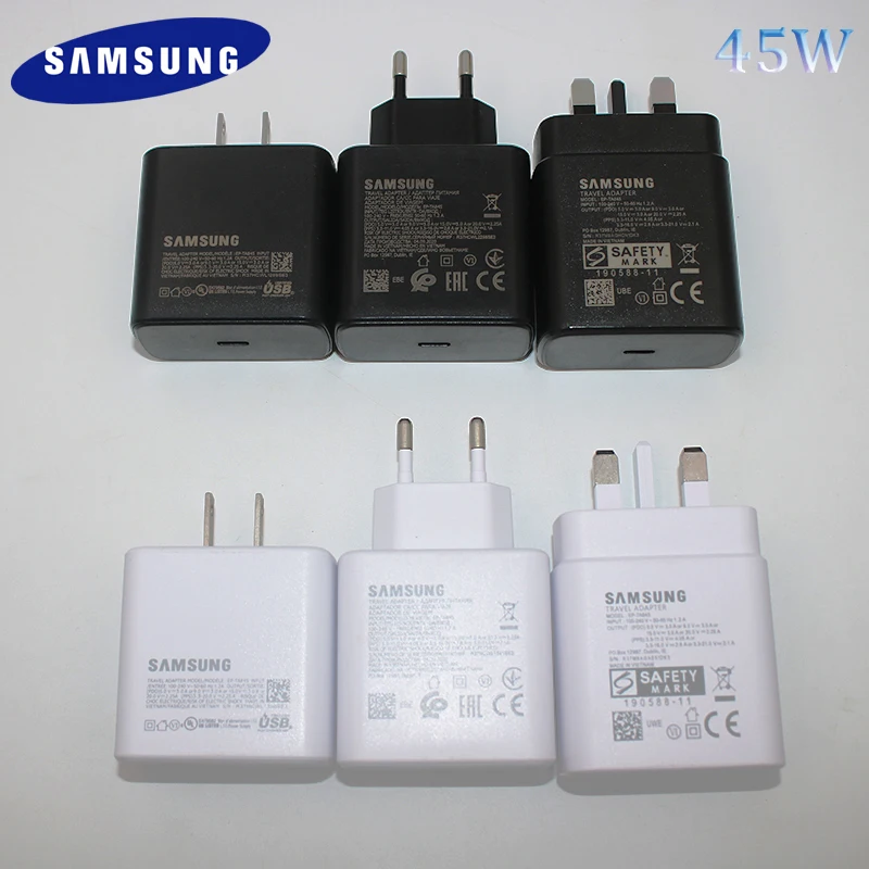 Samsung Note 20 + зарядное устройство 45 Вт USB-C супер адаптивный адаптер быстрой зарядки EU/US/UK Разъем для Galaxy Note 10 +/20 Ultra/S21 +/S22 Ultra