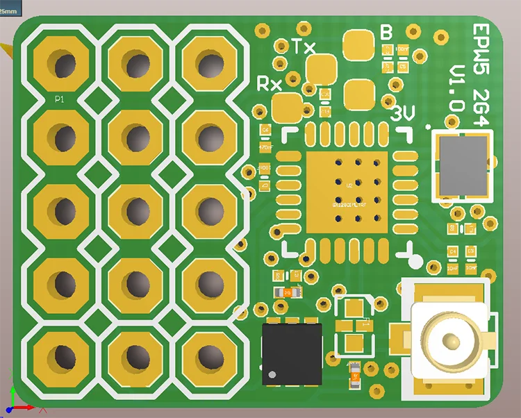 Характеристики: ESP8285, SX1280/1281 Разъем антенны: IPEX MHF 1/U.FL 5x PWM выходы Радиочастота: 2,4 ГГц (2400 ~ 2480 МГц) Мощность телеметрии: 12 дБм Протокол приемника: ШИМ или CRSF Входное напряжение: + 5 В DC @ "+" pad Размер печатной платы: 17 мм x 14 мм Вес: 1,1g/антенна Прошивка: DIY_2400_RX_PWMP, PWM приемник через 1 ~ 5 PWM выходы HappyModel_EP_2400_RX, последовательный приемник CRSF через TX и RX Обновление прошивки через UART или WIFI