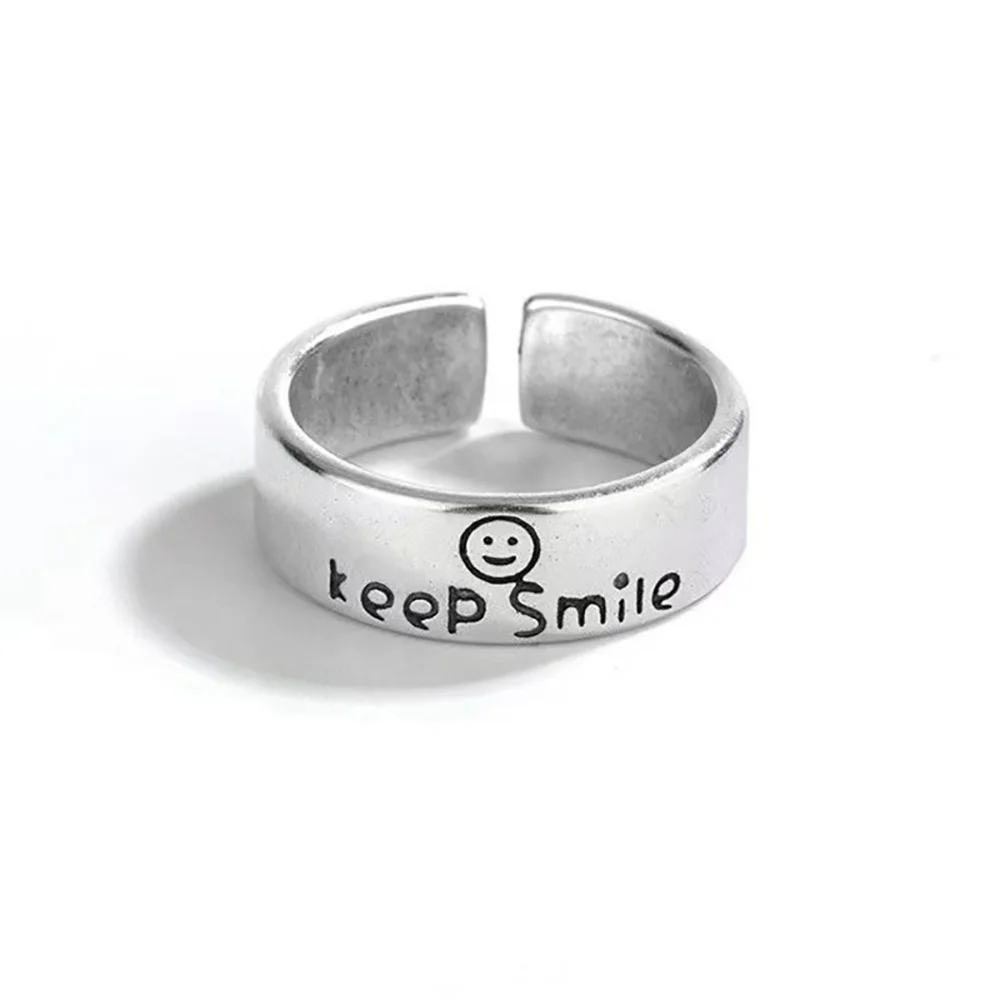 Женское кольцо с надписью Keep Smile, регулируемое вечерние ЦО с надписью на английском языке