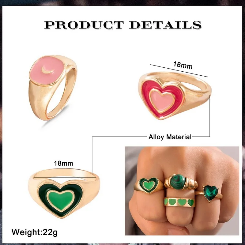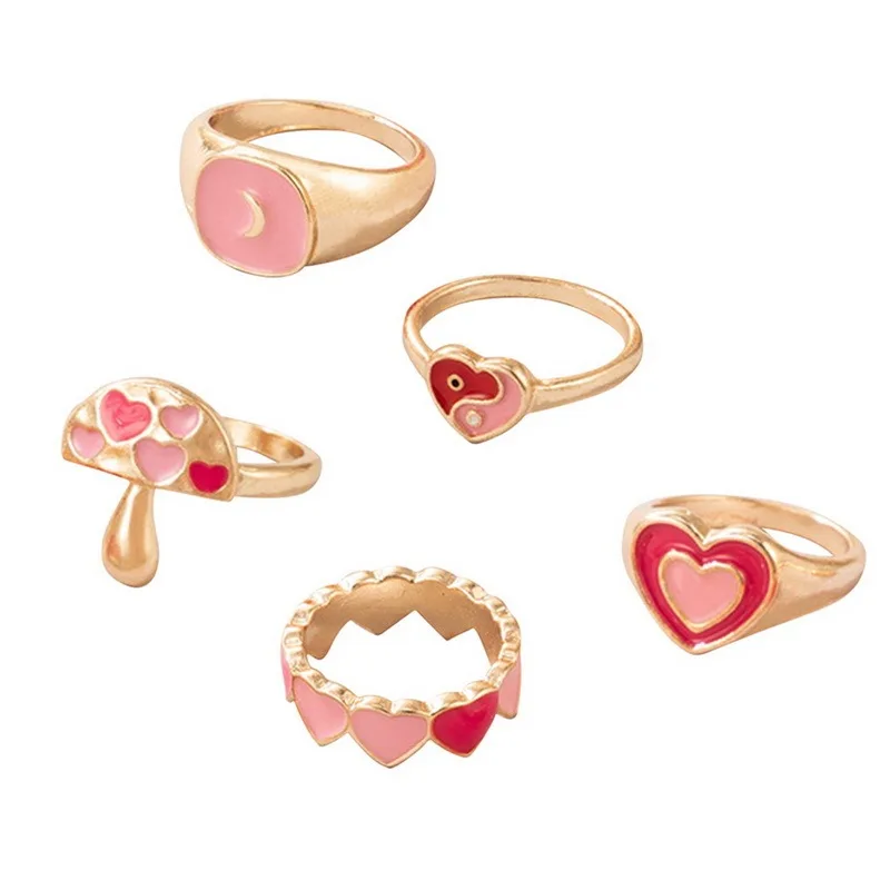 Комплект колец Tocona с милым розовым сердцем для женщин и девушек,...