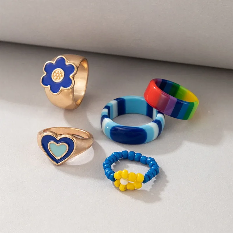 Новинка, набор колец с эмалью в виде жвачки, Женское кольцо с милым голубым сердцем, грибы, цветы, луна, акриловое кольцо на палец, ювелирные изделия, кольца для пар, подарки
