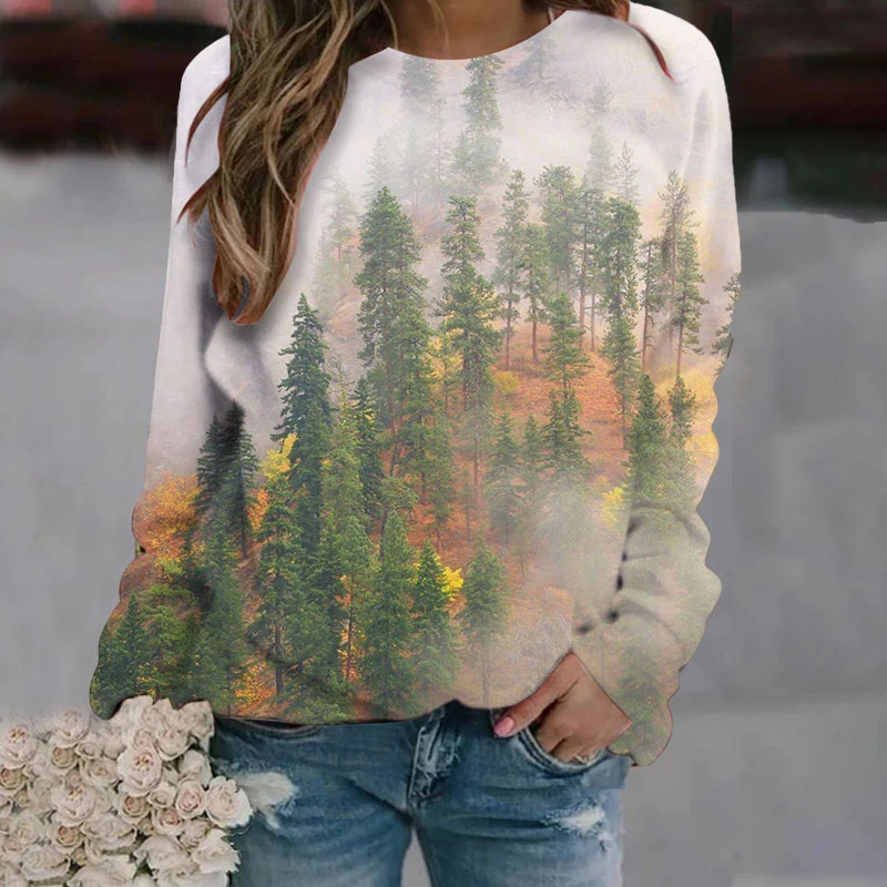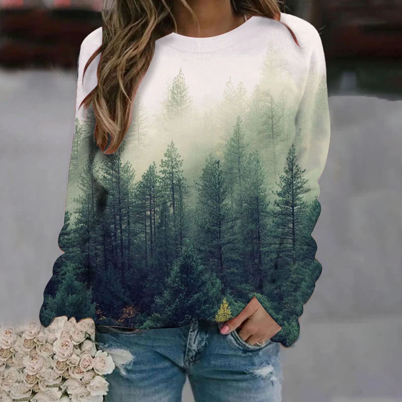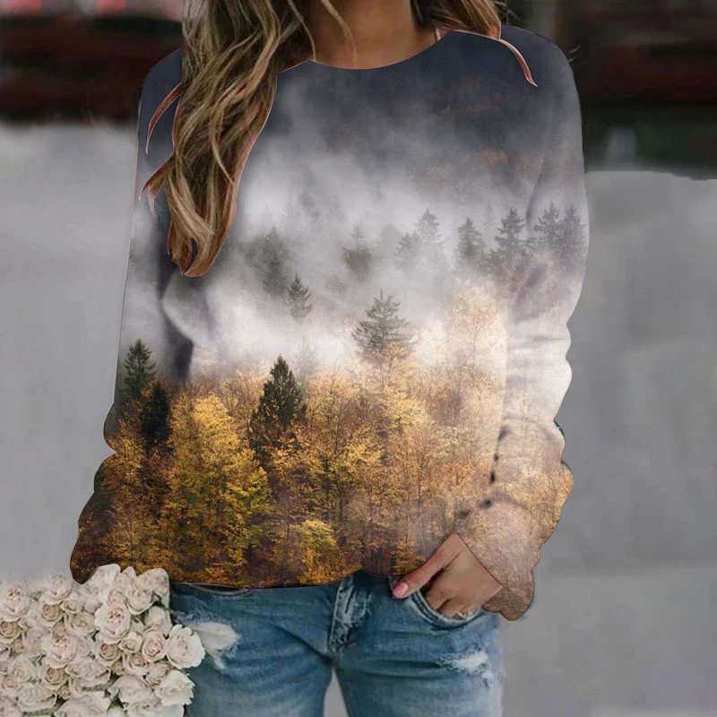 ❤Особенности: длинныйРукав,Круглый вырез, 3D цифровая печать, модный стиль.