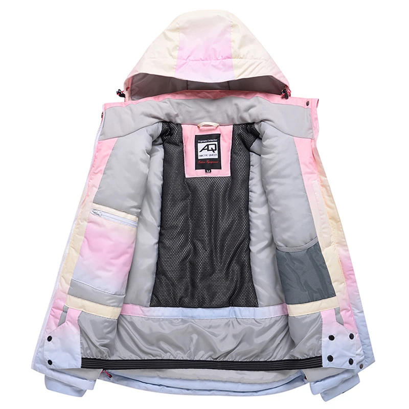 Лыжная одежда женская с капюшоном Толстая теплая водонепроницаемая ветрозащитная Женская куртка для сноуборда брюки костюм горнолыжная женская одежда