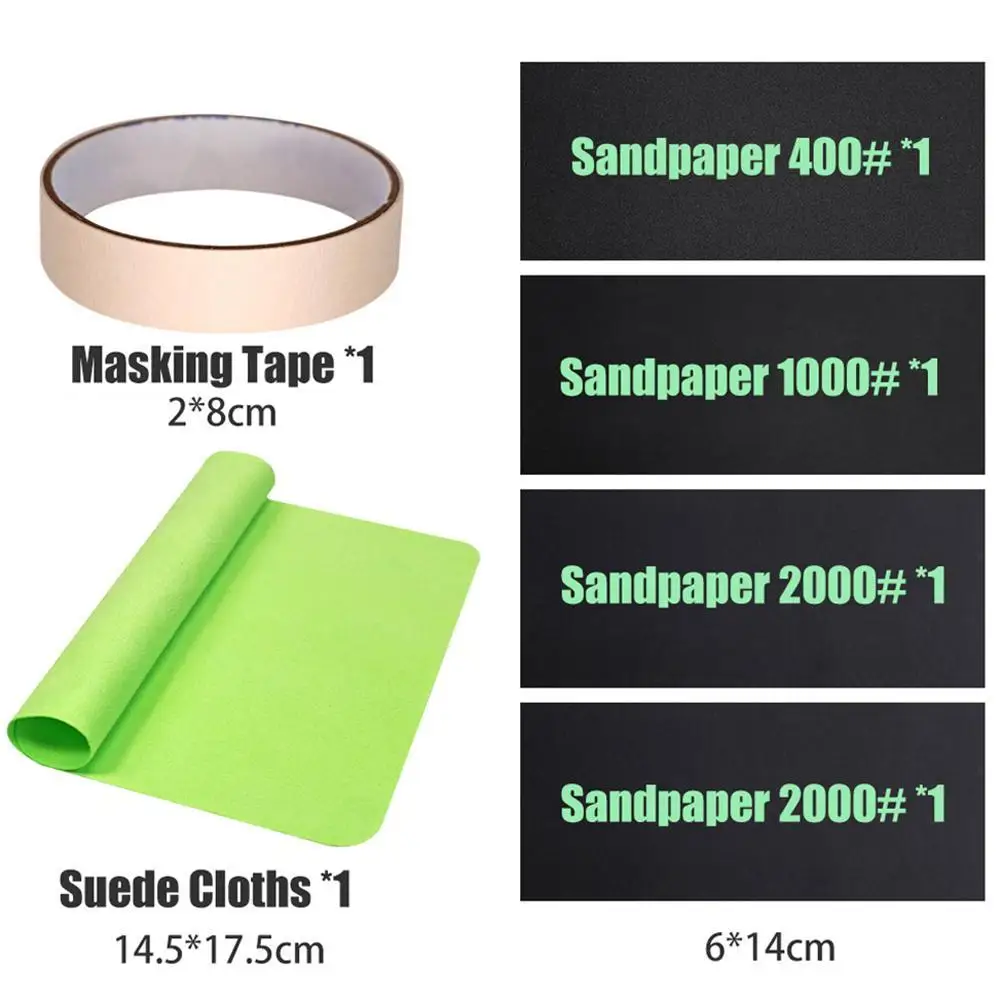HGKJ 8 реставратор фар-это решение для восстановления оптической четкости фар, задних фонарей и других прозрачных пластиковых линз вокруг любого автомобиля, грузовика или мотоцикла.Это профессиональный лак, который помогает удалить выцветший и окисленный внешний пластик, показывая чистую чистоту неповрежденного пластика под ним. Легко удаляет выцветший желтый и серый Красти пластик, чтобы сделать любую пластиковая фара, задний фонарь или указатель поворота объектив выглядит кристально чистым и совершенно новым.HGKJ 8 также может помочь защитить чувствительный пластик от поврежденных УФ-лучей, которые уничтожают пластик в первую очередь, сохраняя четкое видение для жизни части.ЧистыйТщательно очистите фару с мылом и водой или очистителем/обезжиривателем. Чтобы определить, нужна ли фара шлифовка, налейте воду на поверхность. Если он кажется кристально чистым при влаге, не требуется шлифование. Если нет, поверхность должна быть отшлифована, чтобы удалить окисление.ПесокНамочите фару водой. Шлифовка фары с помощью наждачной бумаги. Используйте наждачную бумагу 400/1000/3000 для полировки в свою очередь. Убедитесь, что линзы остаются влажными при использовании наждачной бумаги. Окисление, исходящее от объектива, будет отображаться как коричнево-цветная жидкость. Продолжайте песок до тех пор, пока вода больше не станет коричневой или туманной. Протрите линзу сухой, чтобы удалить лишнюю зернистость.ПротритеРазложите 3 - 6 точек передних фар на полотенце из микрофибры или подушечка-аппликатор. Затемняйте линзы для фар до тех пор, пока лак не станет чистым. Протрите остатки чистым полотенцем из микрофибры и осмотрите работу. Светильник можно высушить в течение 1 часа и не допускать попадания влаги в течение 24 часов.Посылка включает в себя все, что вам нужно для этого автомобиля:HGKJ 8 восстановительная жидкость * 1,ИлиЛента * 1,Замшевая ткань * 1,400 зернистой наждачной бумаги * 1,1000 зернистой наждачной бумаги * 1,2000 зернистой наждачной бумаги * 2.