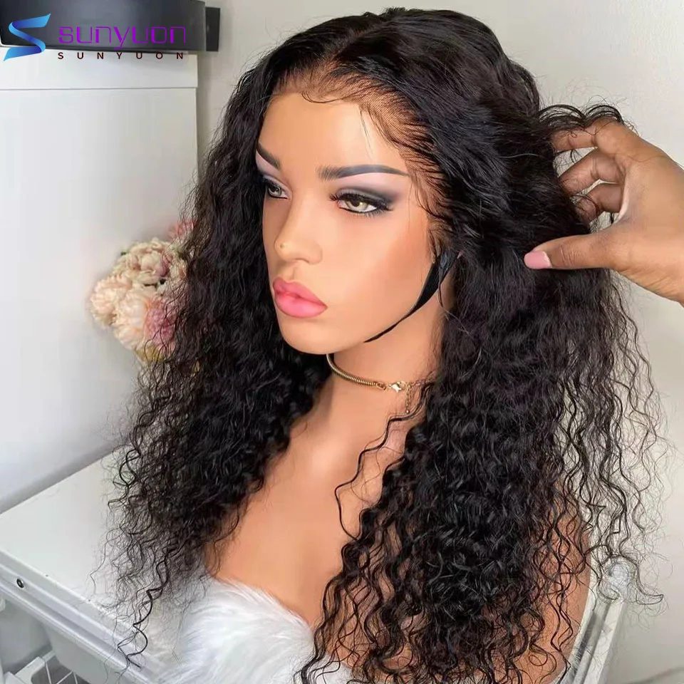 13x4 глубокая волна Синтетические волосы на кружеве al парик плотность 180% бразильский вьющиеся человеческие волосы парик 13x6 Hd Синтетические волосы на кружеве парики для Для женщин