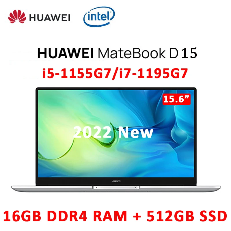 Ноутбук HUAWEI MateBook D 15, новый ноутбук 2022 дюйма, Intel Core i7-1195G7 16 Гб ОЗУ 512 Гб SSD, ультратонкий компьютер 14 дюймов, Windows 11