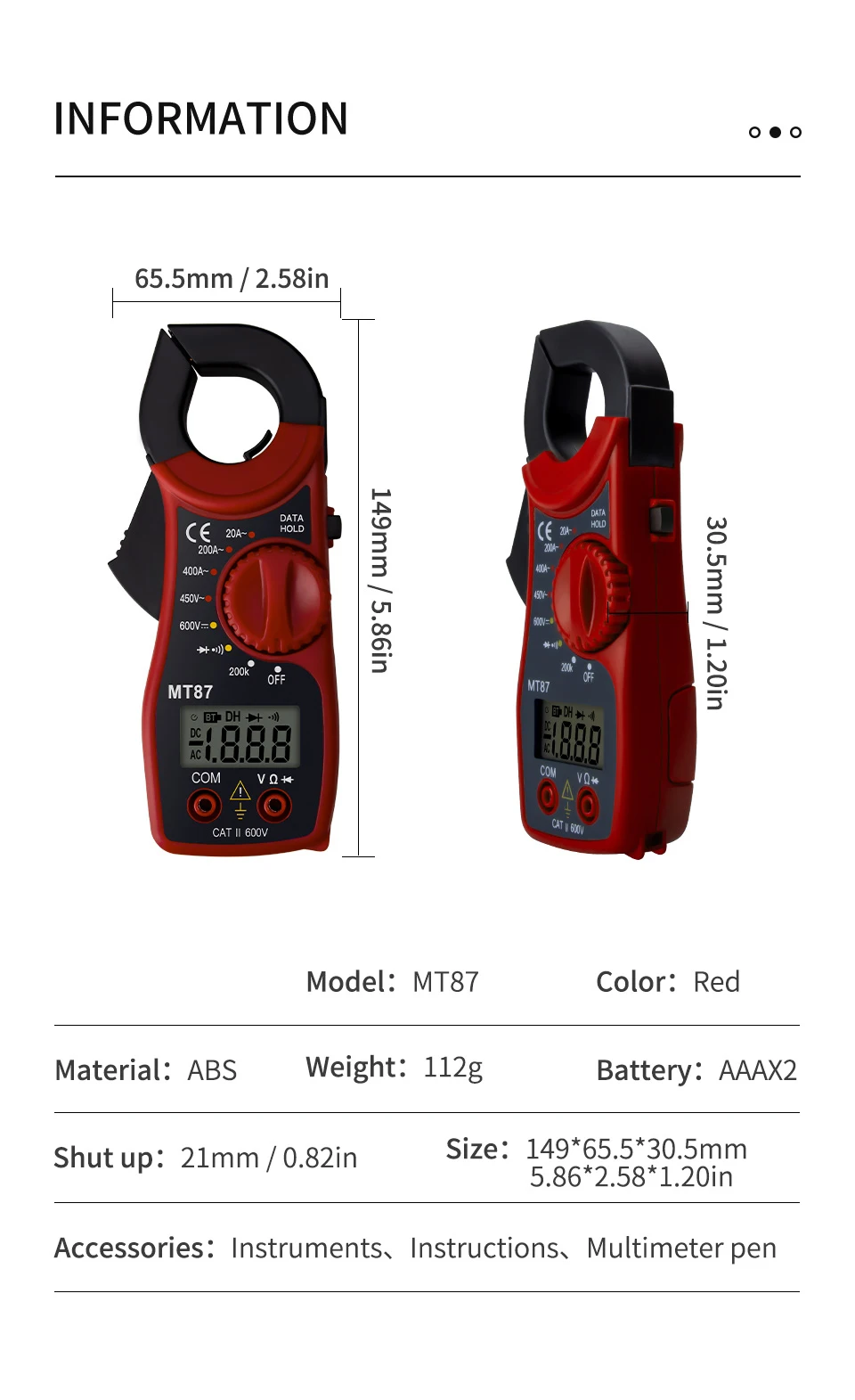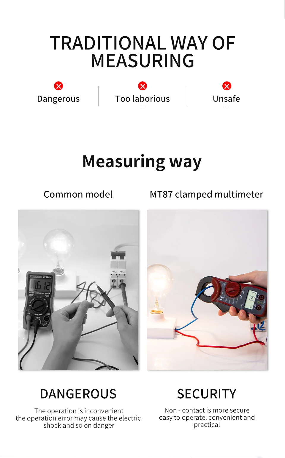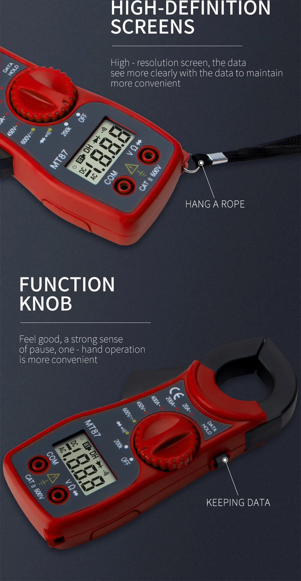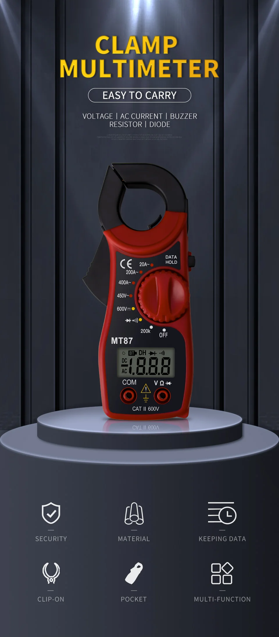Портативный цифровой мультиметр-зажим MT87 с ЖК-дисплеем измерительный измеритель напряжения переменного/постоянного тока тестер сопротивления тока многоизмерительный измеритель мощности