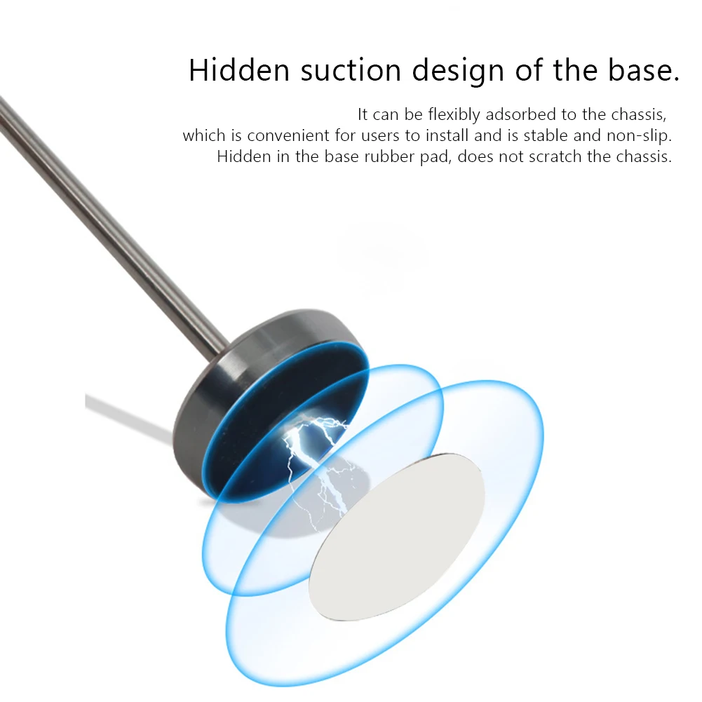 Базовая Скрытая адсорбционная конструкция. Его можно гибко адсорбировать на шасси, что удобно для пользователей для установки, стабильной и противоскользящей. Он скрыт в основании резиновой прокладки без царапин шасси.