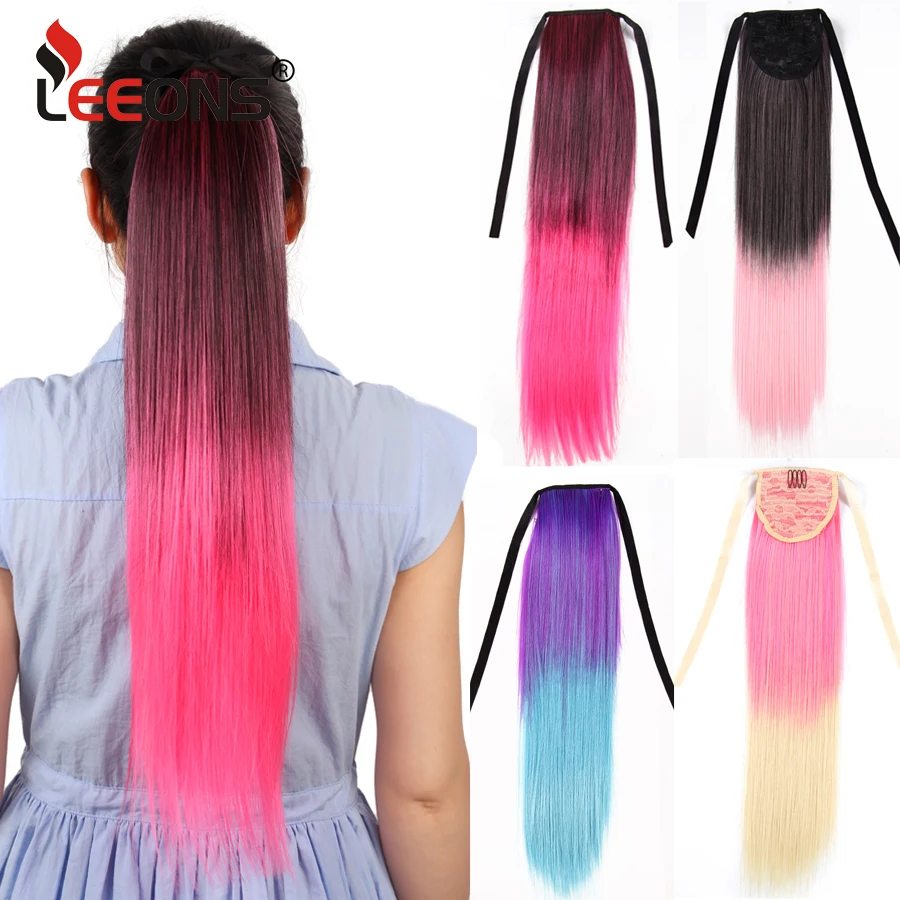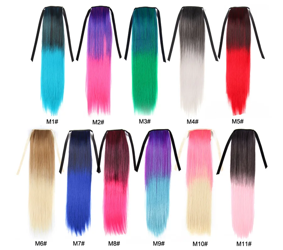 Прямой синтетический удлинитель для конского хвоста 20 дюймов красочный удлинитель для прямого хвоста термостойкий шиньон для женщин