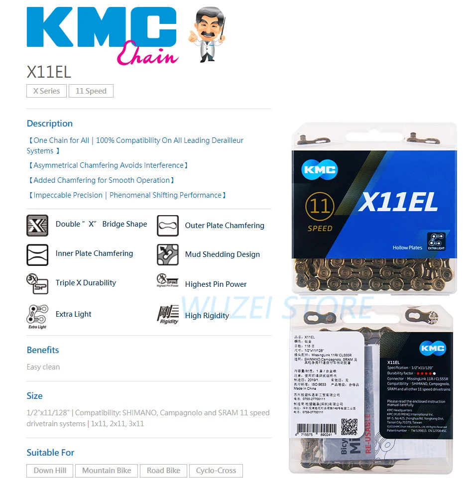 Цепь для горного велосипеда KMC X11 116L 118L X11EPT X11SL X11EL, о...