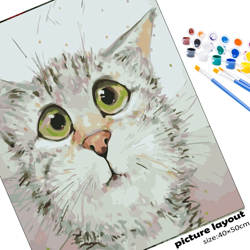 Картины по номерам, животные, кошка, подарок, Diy масляная краска п...