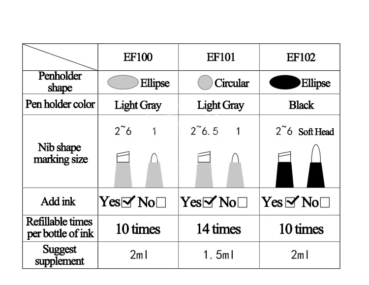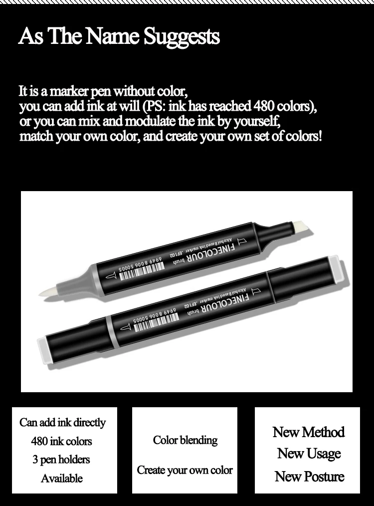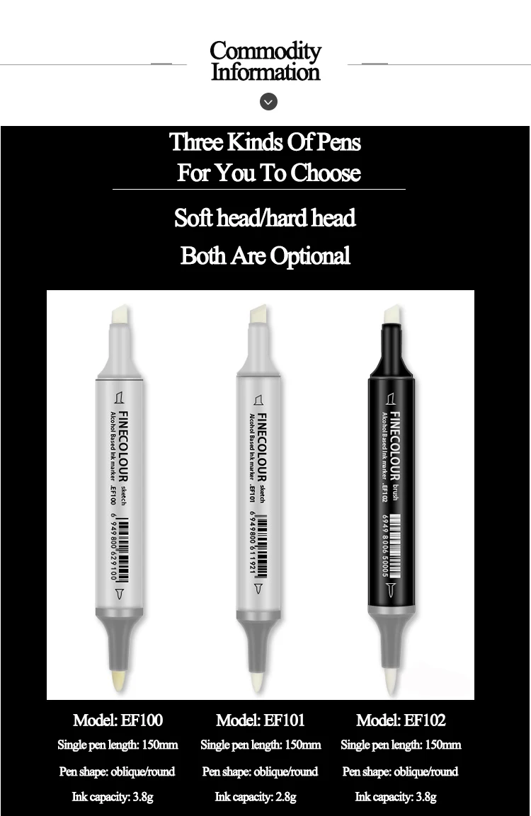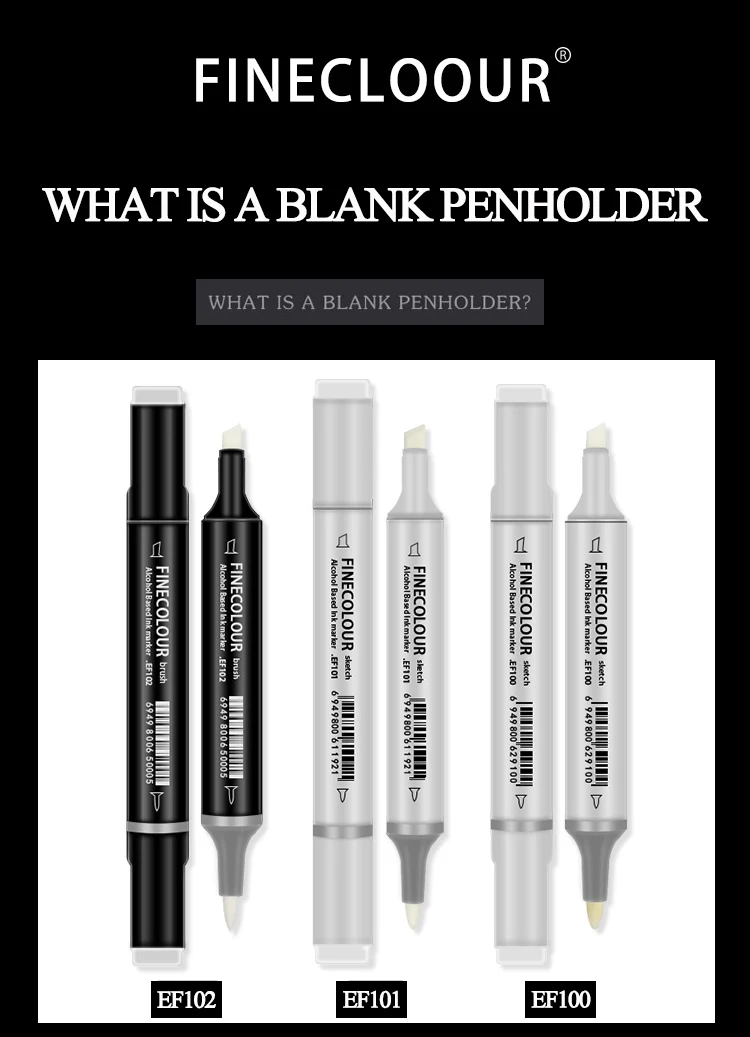 Сменный художественный маркер Finecolour EF100EF101EF102 поколения, со сменным большим скошенным наконечникоммаленьким круглым наконечником для маркера