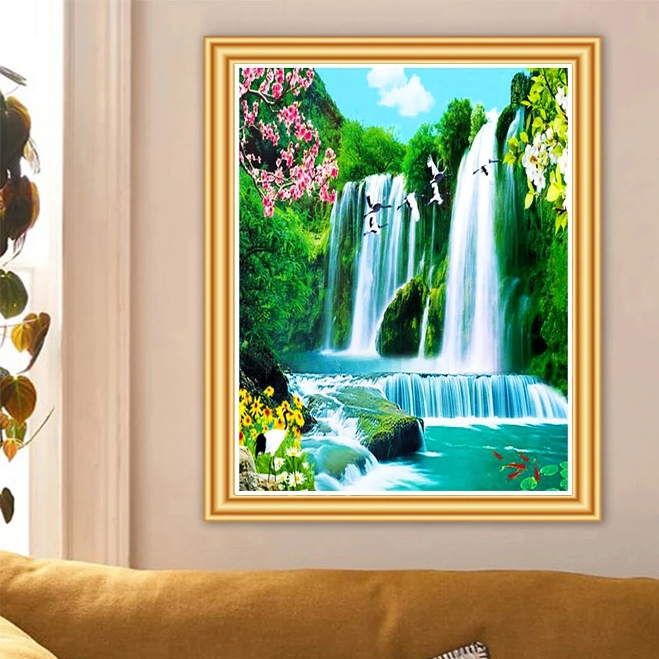 5D алмазная живопись, пейзаж, водопад, Ландшафтная мозаика с бриллиантами, Набор для вышивки крестиком стразы, рисунок, искусство, сделай сам, украшение для дома