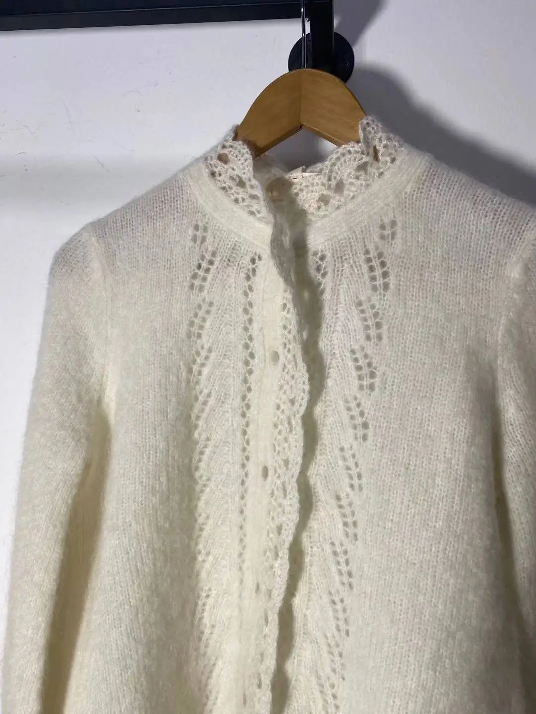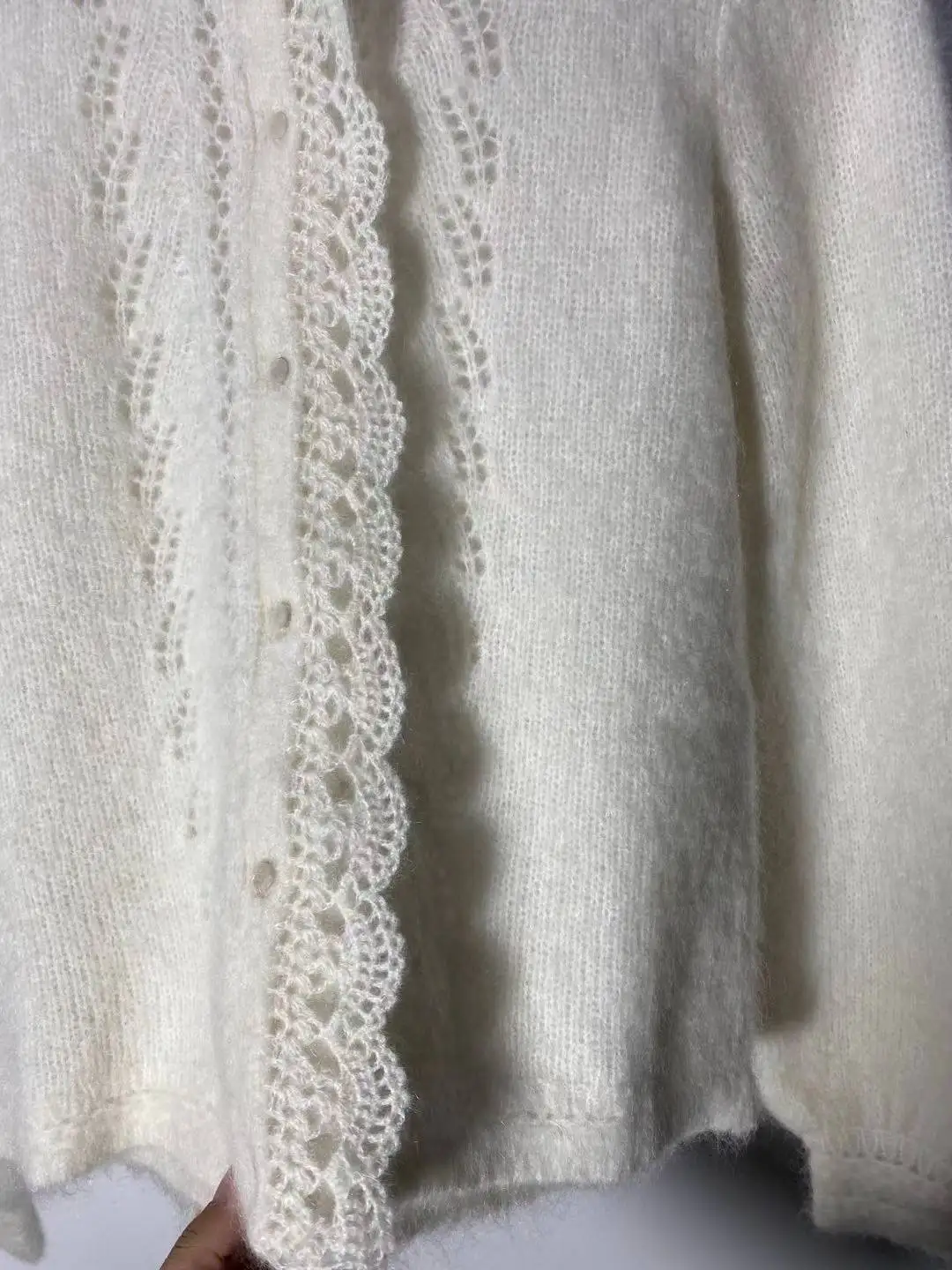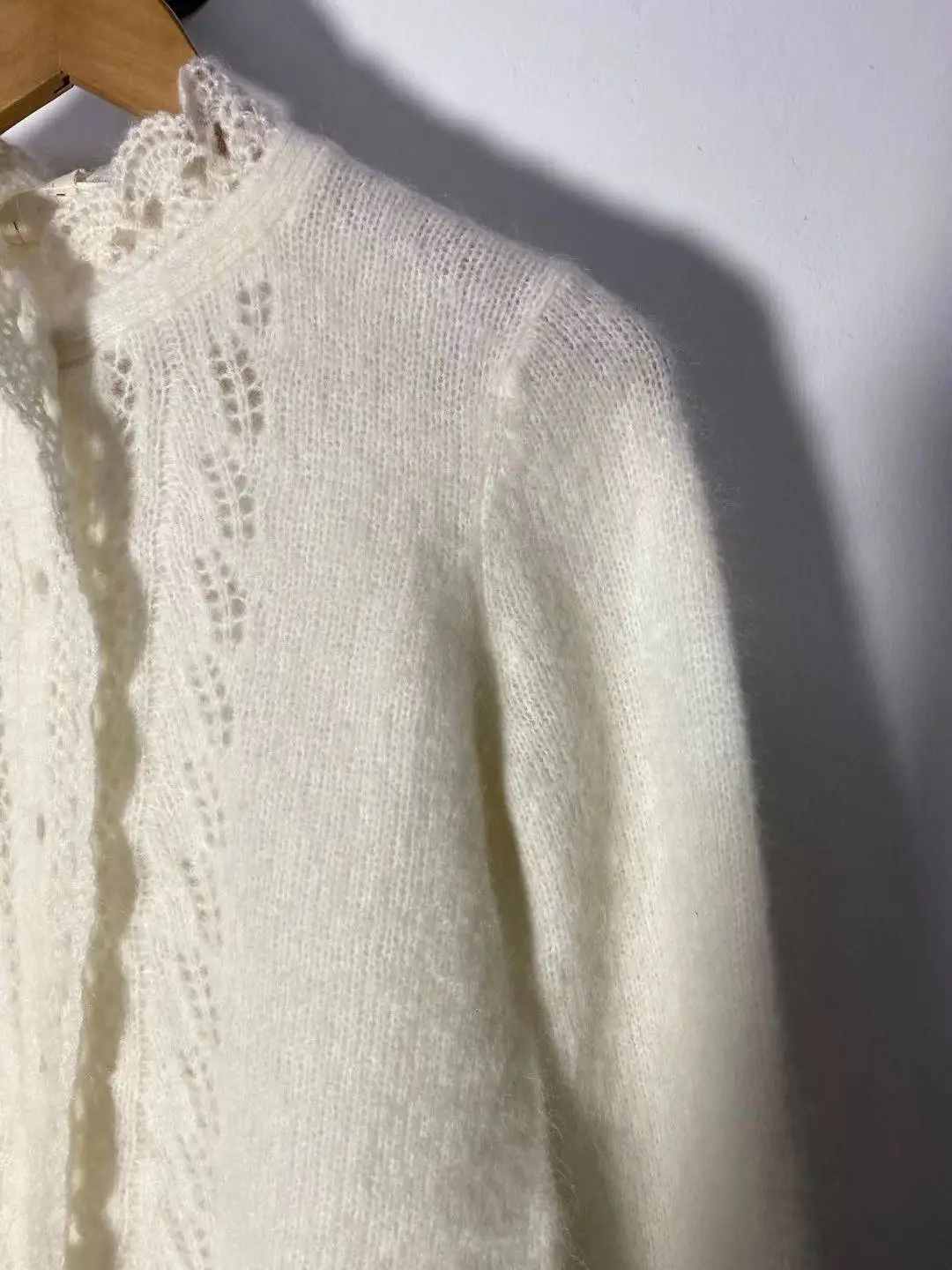 Детский мохеровый вязаный кардиган, зимние элегантные ажурные пуховые рукава, свитер с круглым вырезом, топы, винтажные повседневные женские свитера, жилет