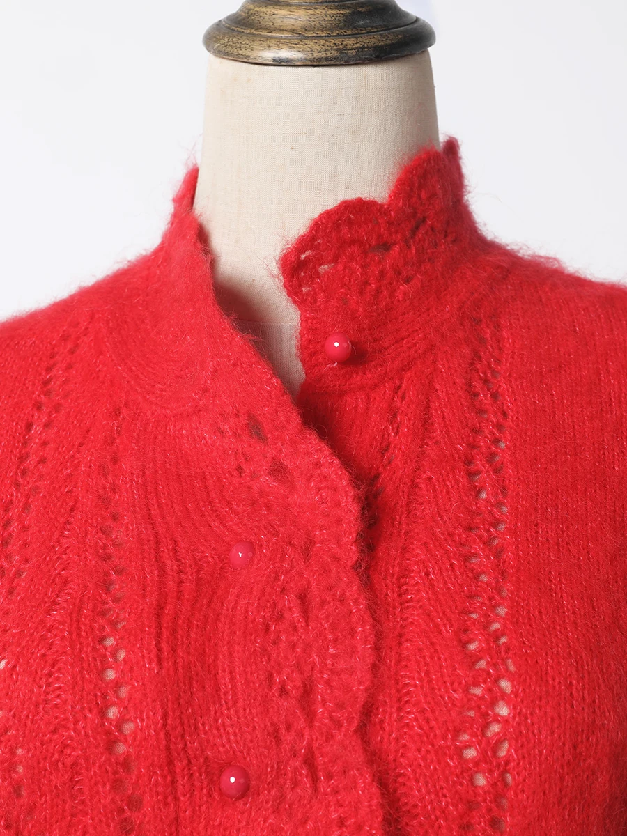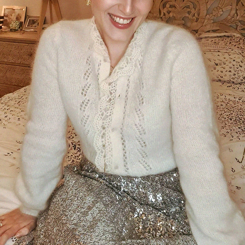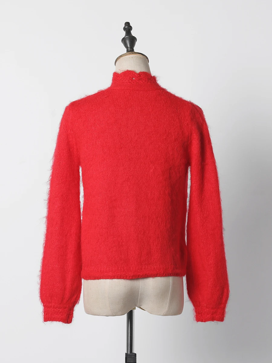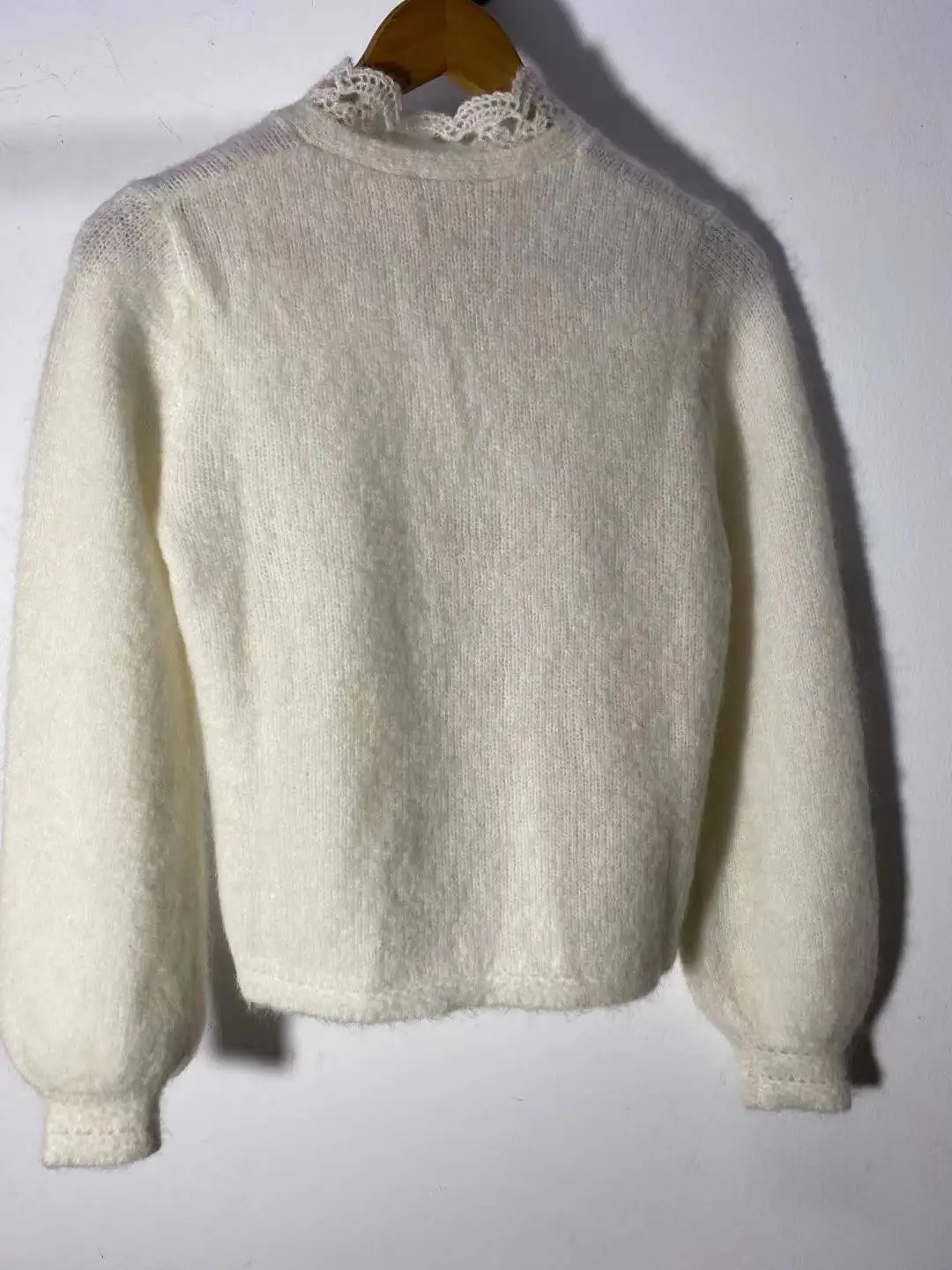Детский мохеровый вязаный кардиган, зимние элегантные ажурные пуховые рукава, свитер с круглым вырезом, топы, винтажные повседневные женские свитера, жилет