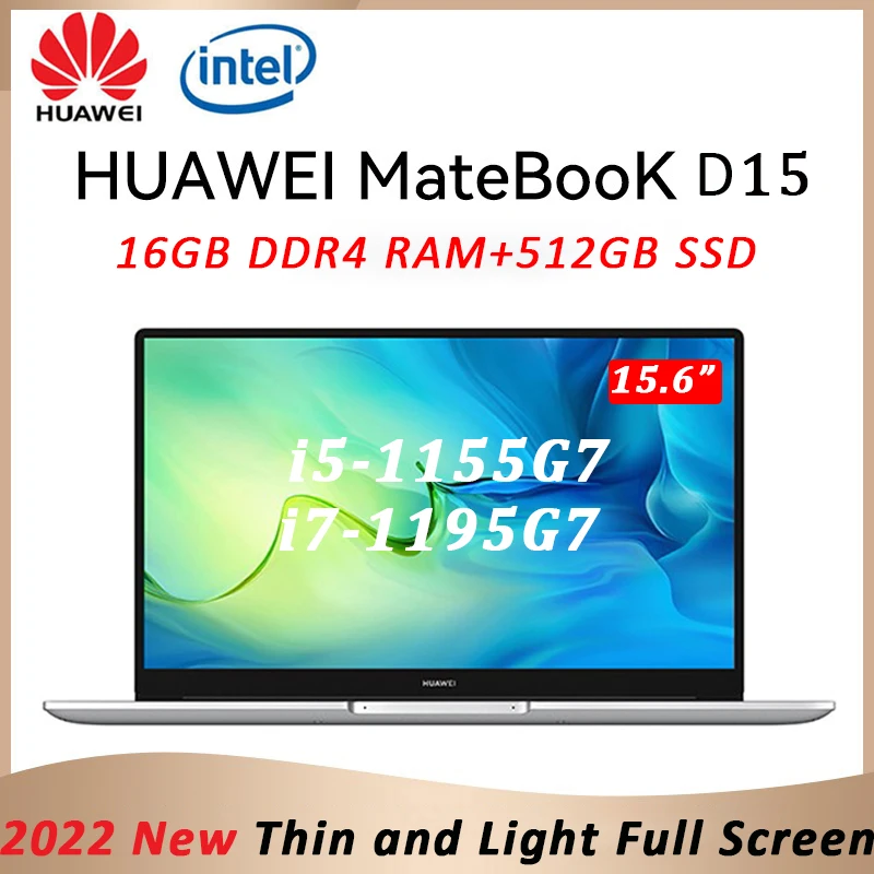 Ноутбук HUAWEI MateBook D 15, новый ноутбук 2022 дюйма, Intel Core i7-1195G7 16 Гб ОЗУ 512 Гб SSD, компьютер на Windows 11, тонкий и легкий ноутбук