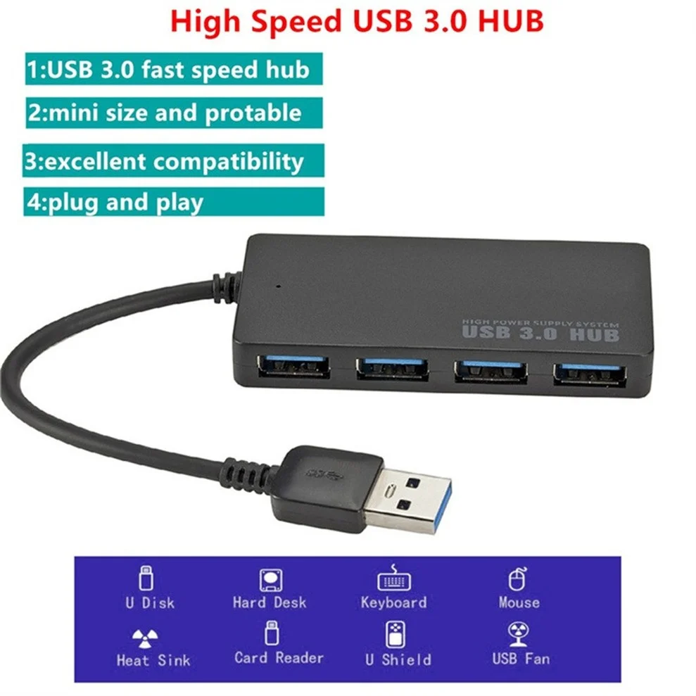 Высокоскоростной концентратор TQQLSS USB 3,0 для ноутбуков и ПК, внешний адаптер с 4 портами, разветвитель, USB-расширитель, компьютерные аксессуары для MacBook PS3