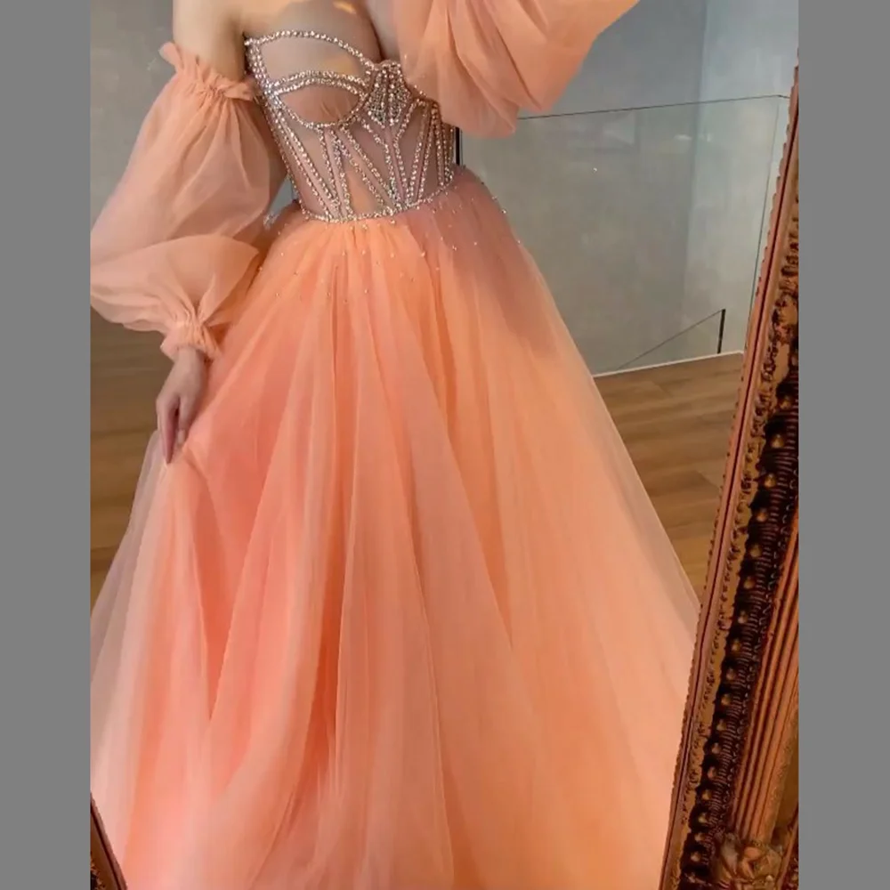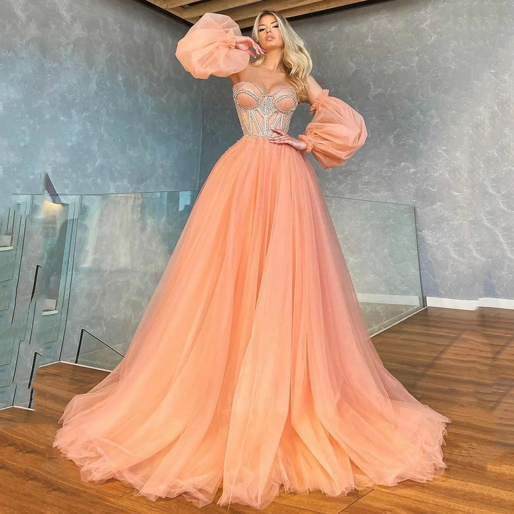 Funyue Очаровательное платье для выпускного вечера 2022 сексуальное платье с открытой спиной со съемными пышными рукавами трапециевидного силуэта тюлевые Вечерние платья Abendkleider