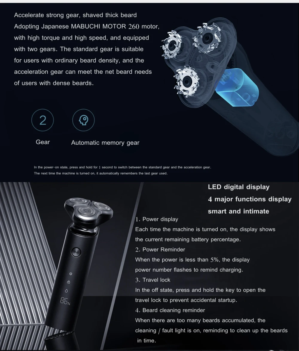 -Водонепроницаемый корпус IPX7: Полностью моющийся корпус бритвы, легко моется.
