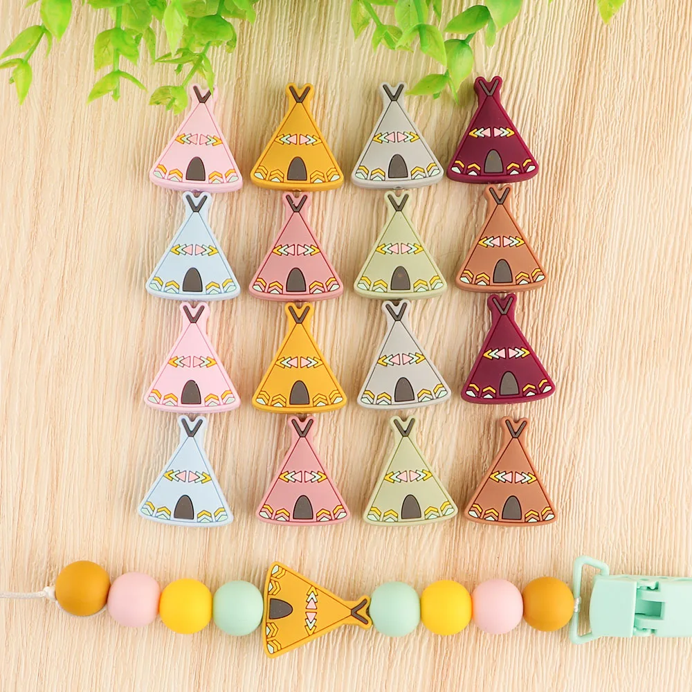 10 шт., силиконовые бусины для прорезывания зубов, 15 цветов