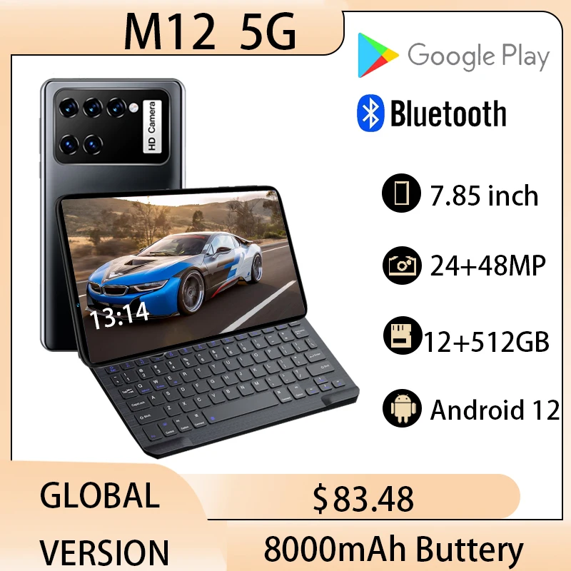 Планшетный ПК M12 отправка клавиатуры Android 12 подарок 12 ГБ 512 ГБ Pad WPS Office 8 Дюймов 48 МП 5G Deca Core Dual Sim GPS Google Play планшет