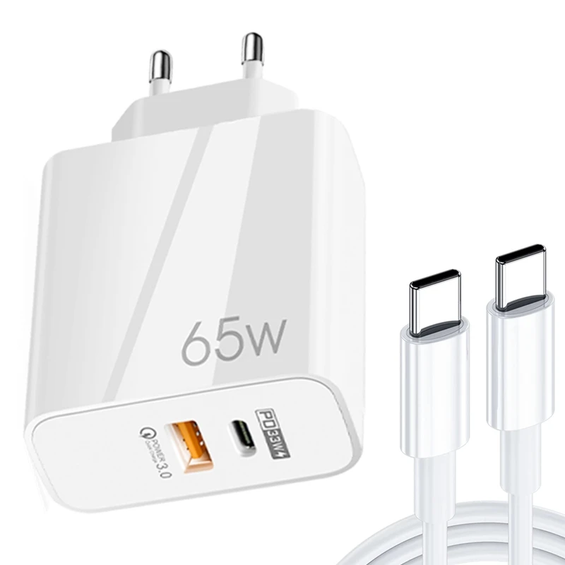 Зарядное устройство USB C на 2 порта, 65 Вт, QC 3,0 PD 3,0 GaN