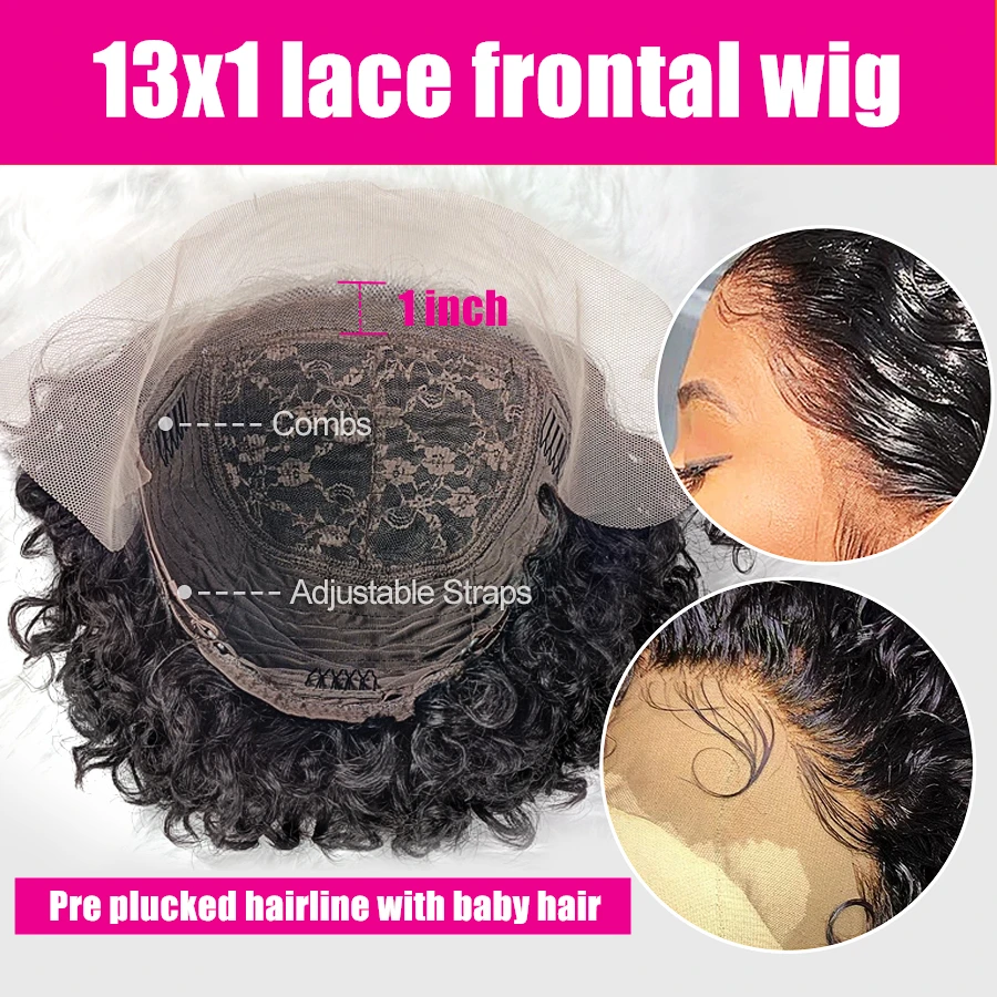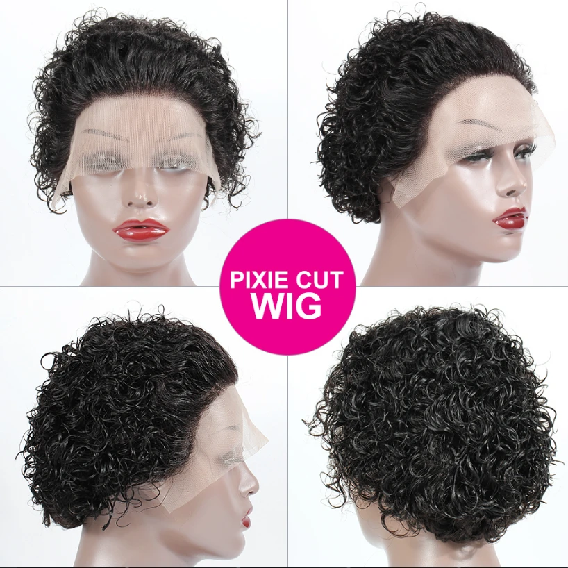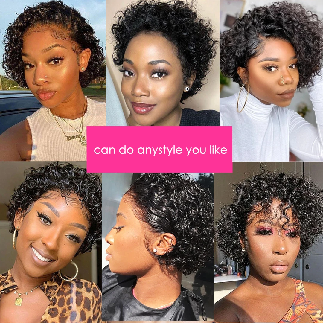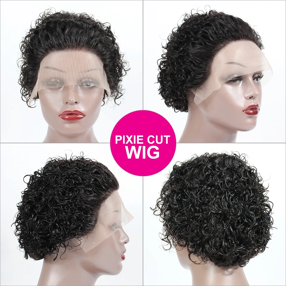 Парик-фея короткие кудрявые вьющиеся человеческие волосы, парики с эффектом омбре, прозрачные парики на сетке спереди, 180% неповрежденные волосы, надувной парик с глубокой волной