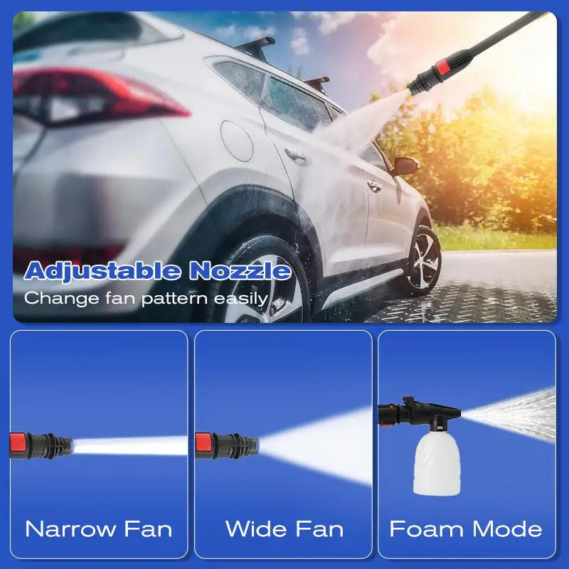 4. Уникальный плагин распылитель более удобен в использовании. Эта мойка высокого давления является водонепроницаемой IPX5 для предотвращения утечки, что позволяет безопасно управлять этой машиной без каких-либо проблем с безопасностью.
