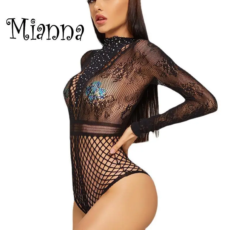 Женское боди сексуальное нижнее белье Стразы экзотическое Сетчатое Боди Чулки комбинация прозрачный сексуальный костюм