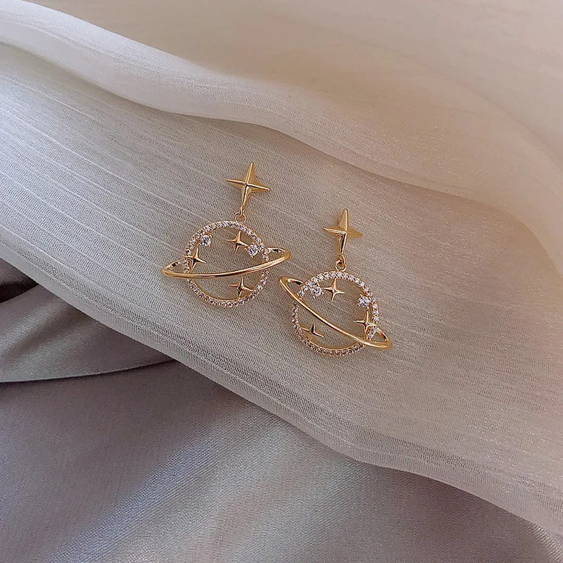 Женские серьги-гвоздики с кристаллами, серьги в форме кота, Луны, планеты, круга, воды, индивидуальные украшения для девушек, 2022