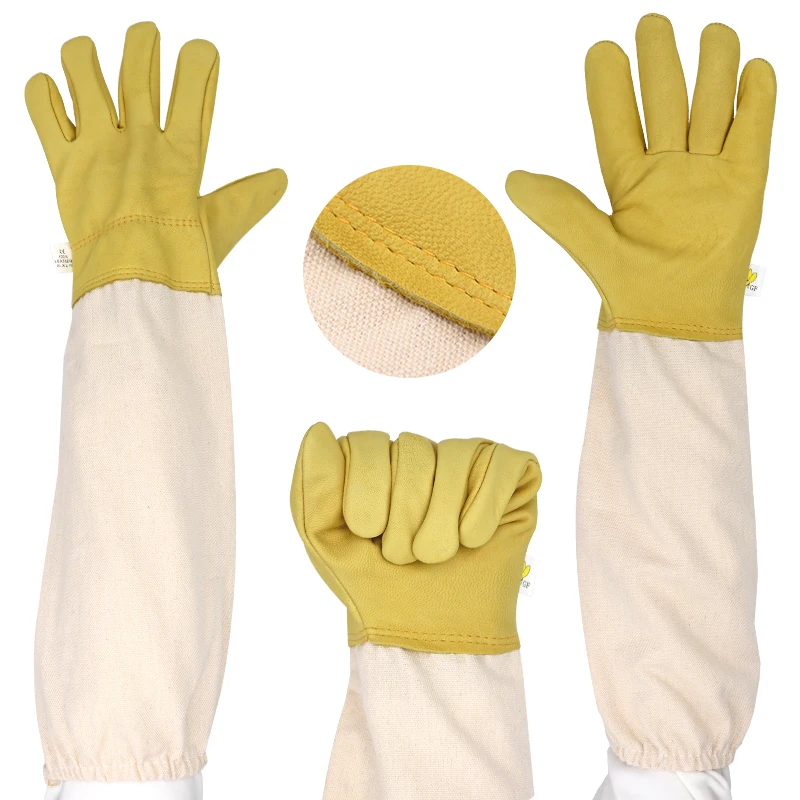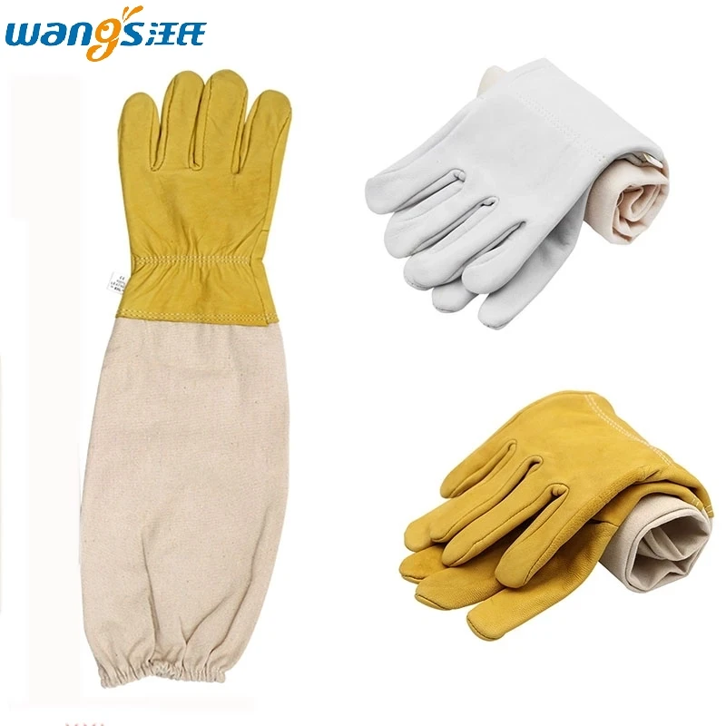 Перчатки для пчеловодства, защитные перчатки, дышащие желтые сетчатые белые перчатки из овчины и ткани для пчеловодства, 1 пара