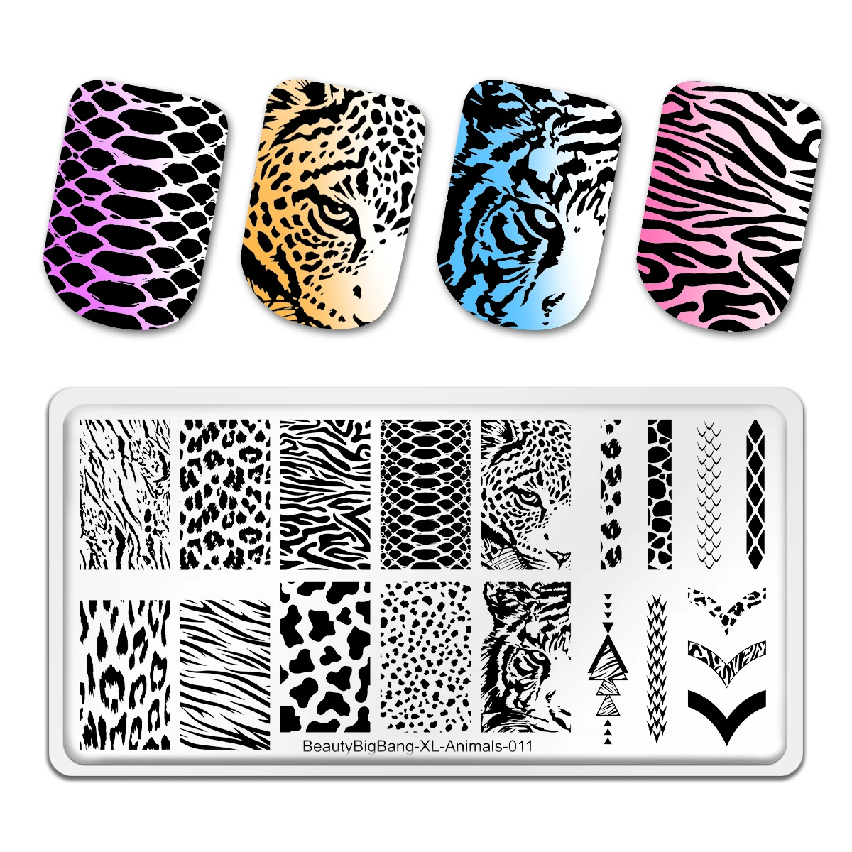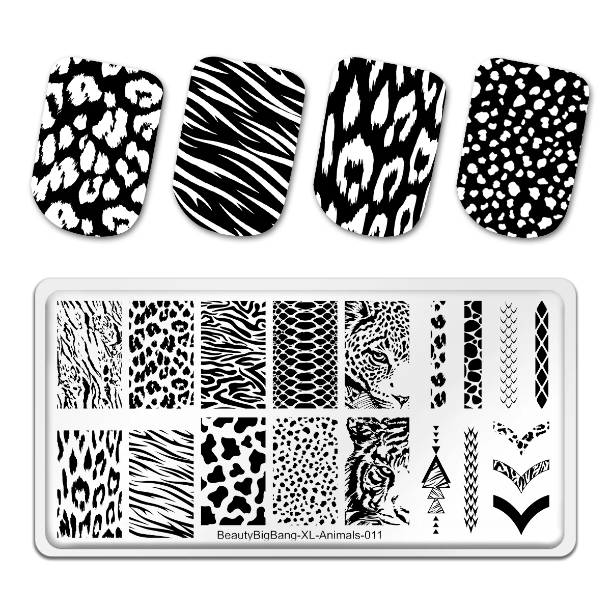 Трафареты BeautyBigBang для стемпинга ногтей с леопардовым принтом змеиной зебры, пластины для самостоятельного дизайна ногтей, шаблон из нержавеющей стали
