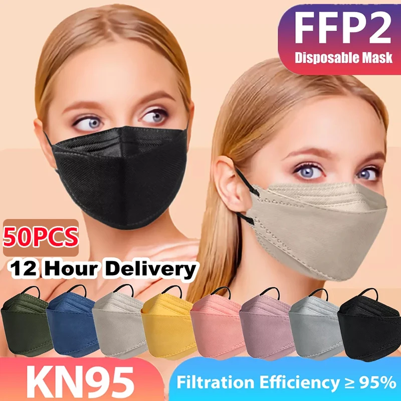 Одноразовые маски Aldult, 50 шт., одноразовые 4-слойные нетканые, фф2, одноразовые черные маски kn95, одноразовые маски