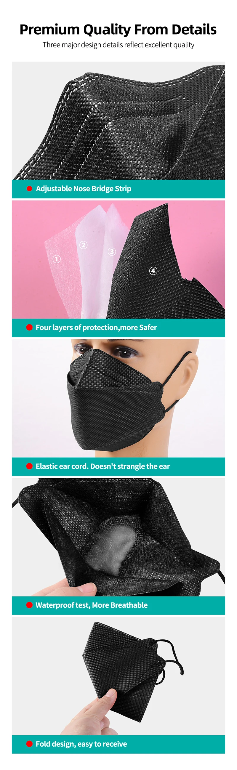 50 шт. Aldult одноразовая маска одноразовая 4-секционный измельчитель для специй с Нетканая ffp2 маски пыленепроницаемый Одноразовые черные маски kn95 одноразовые маскиХарактеристики: