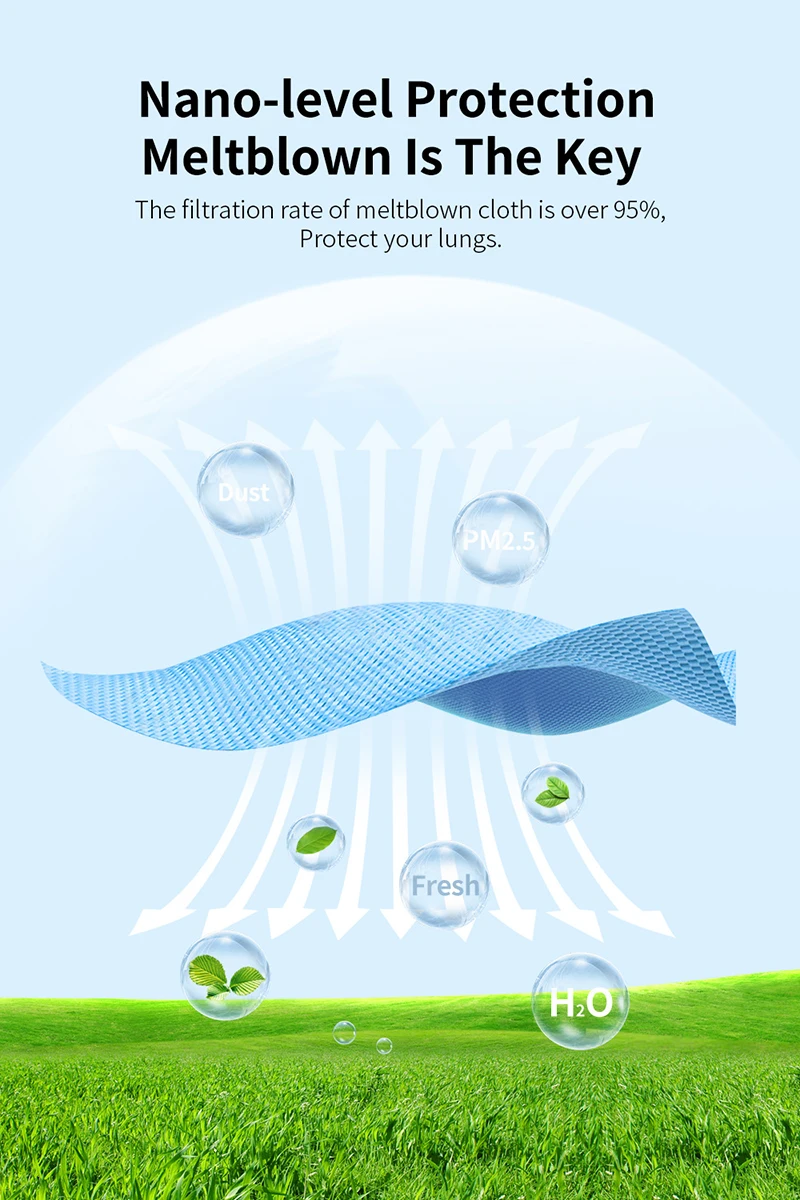 Размер: Маска для взрослыхКласс защиты: маска KN95 FFP2Скорость фильтрации: ≥ 95% (0,075мкм частиц)