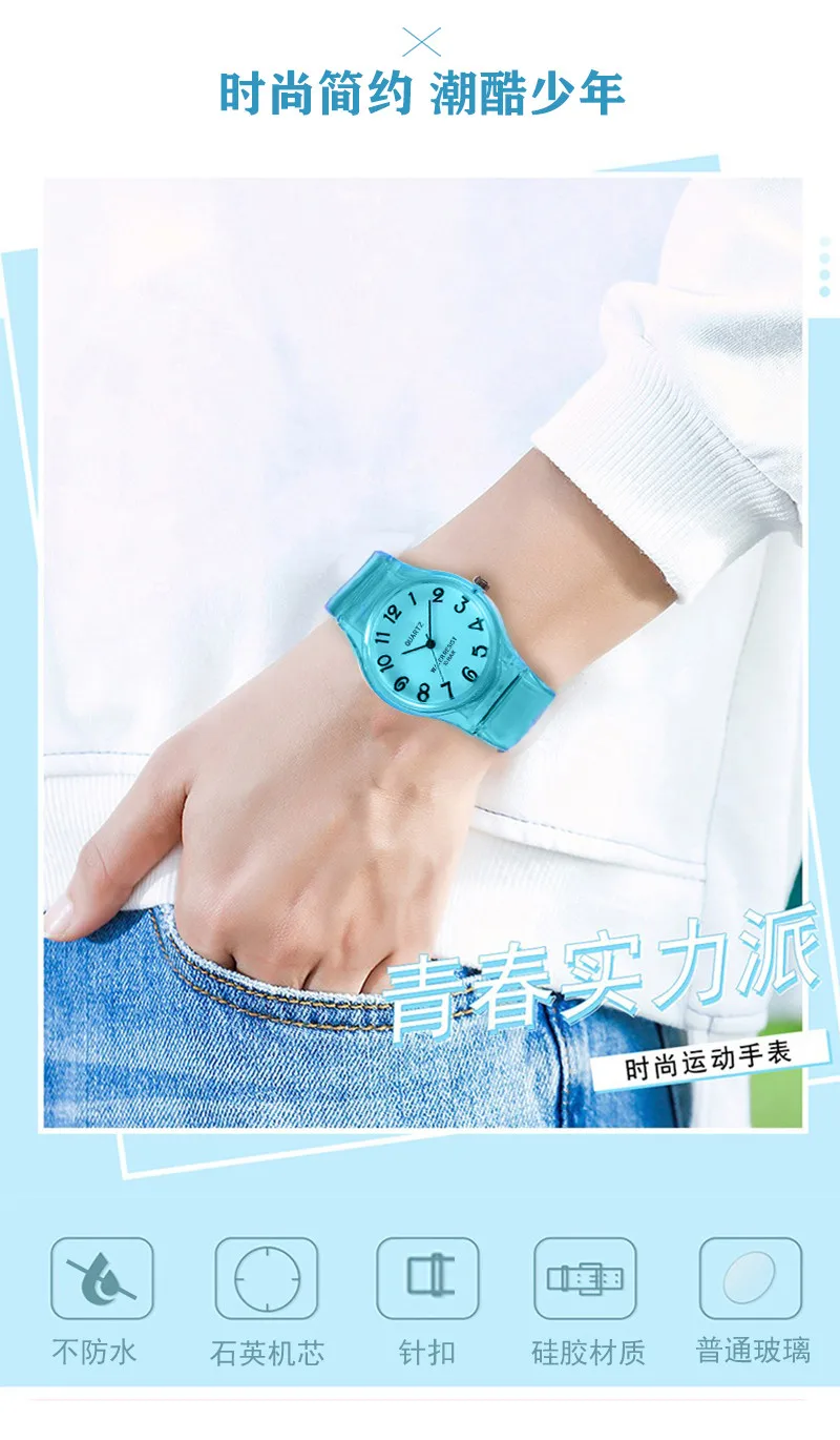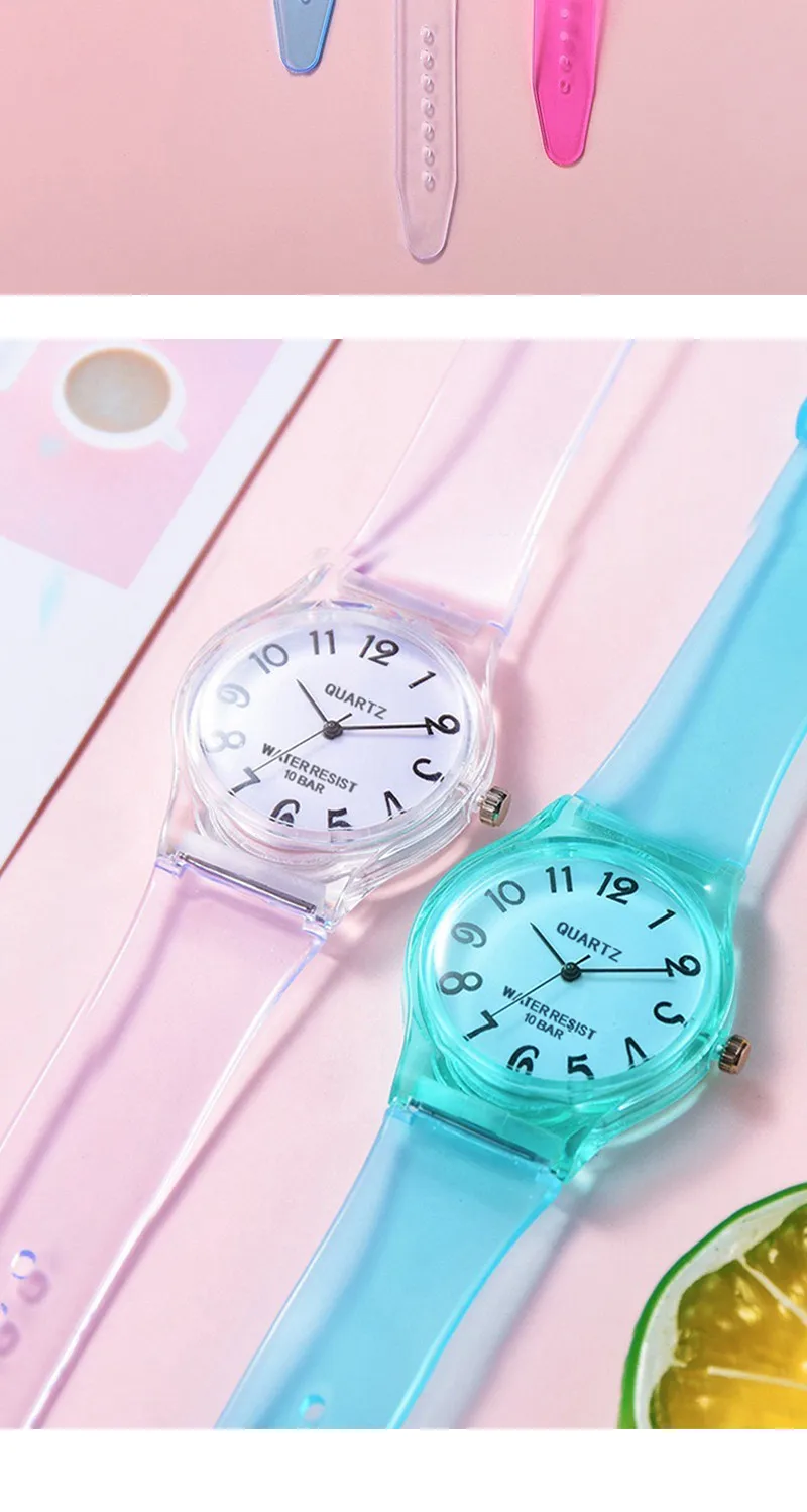Высококачественные повседневные женские кварцевые часы WOKAI с силиконовым желе, милые прозрачные экологически чистые часы карамельных цветов для студентов