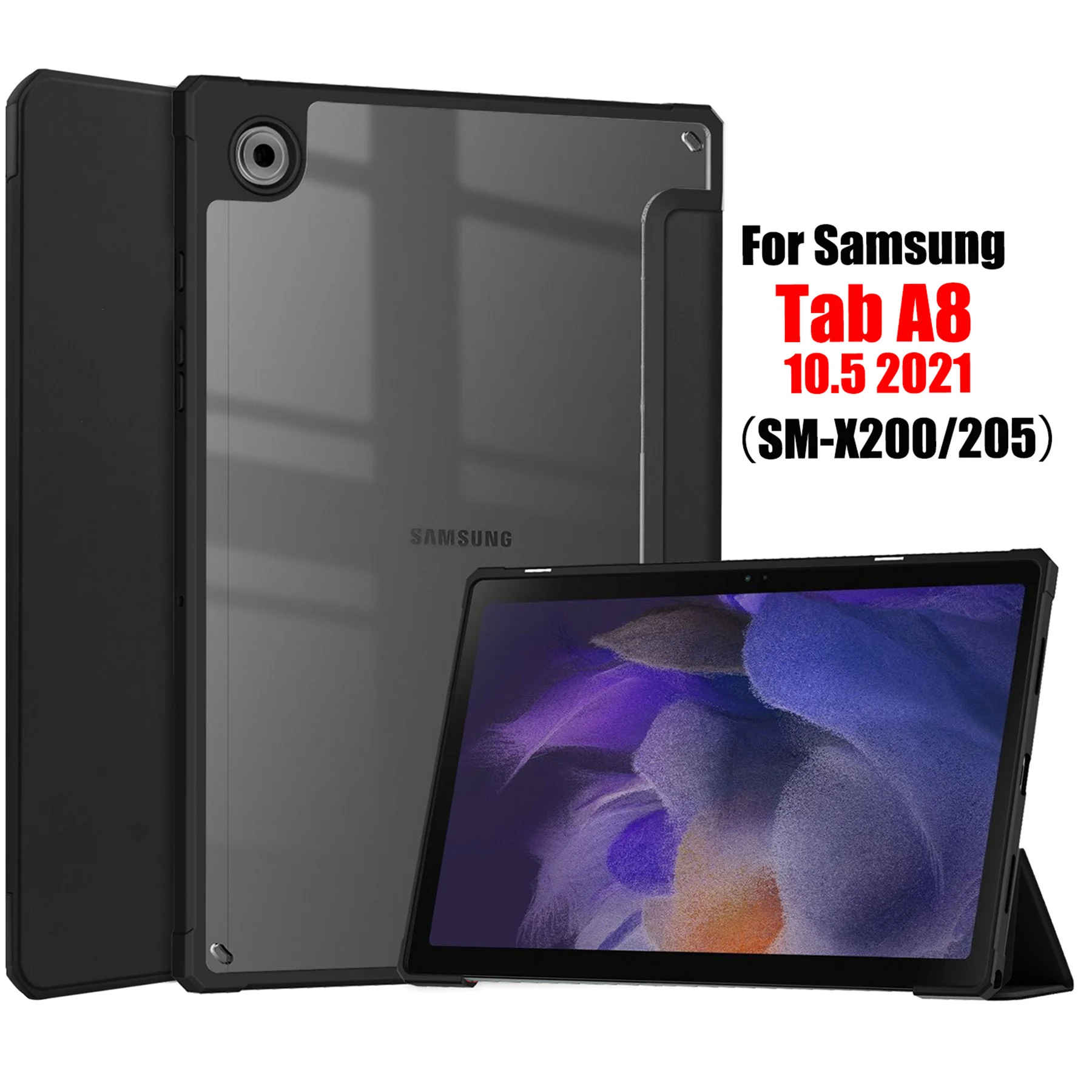 Прозрачный чехол для планшета Samsung Galaxy Tab A8 2021, кожаный чехол 10,5 дюйма с подставкой, тройного сложения, автоматический режим сна и пробуждения, тонкий защитный чехол