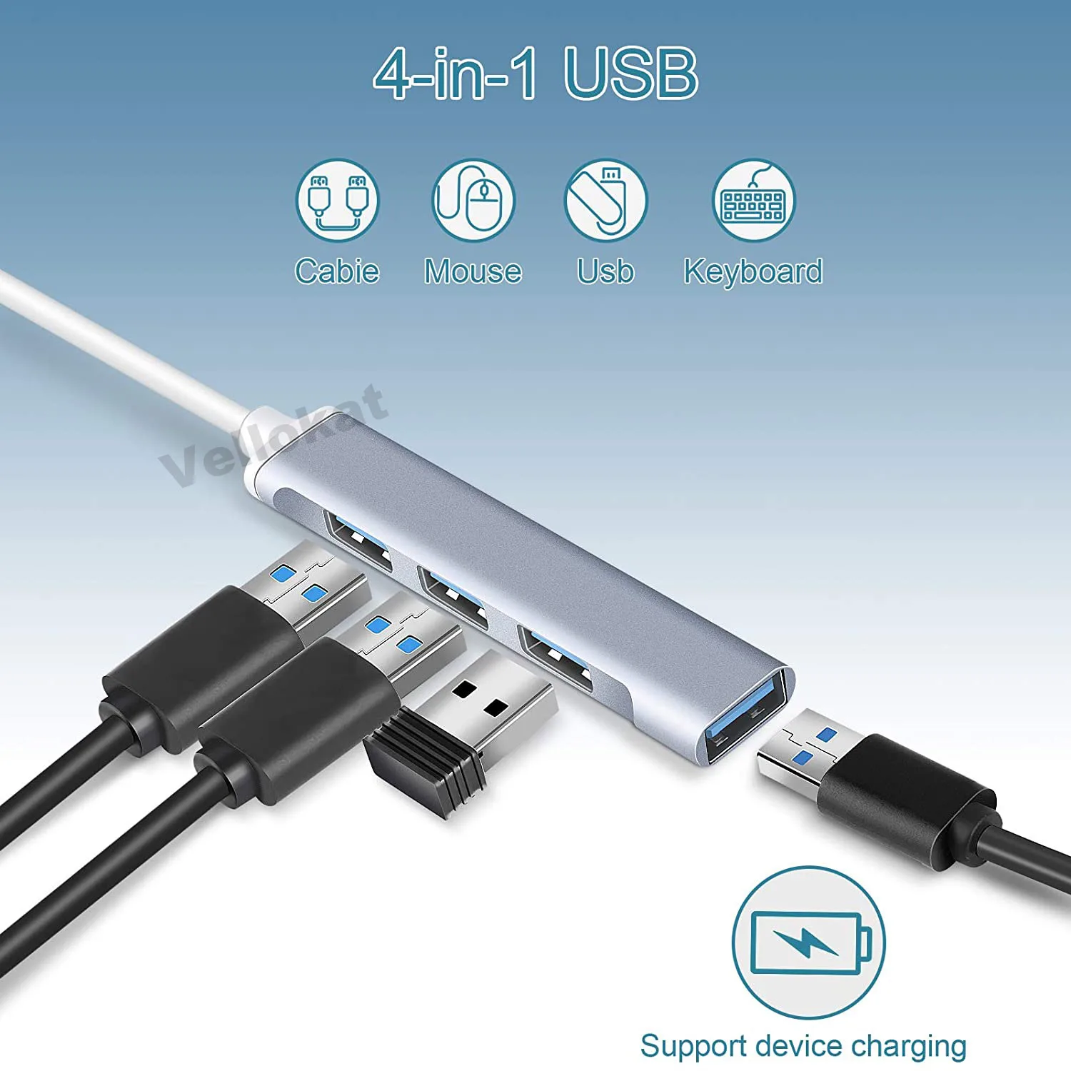 Мини-разветвители, 4-портовый концентратор USB 3,0, концентратор 2,0, станция USB-адаптера, Ультратонкий концентратор данных с портом, алюминиевый USB-разветвитель