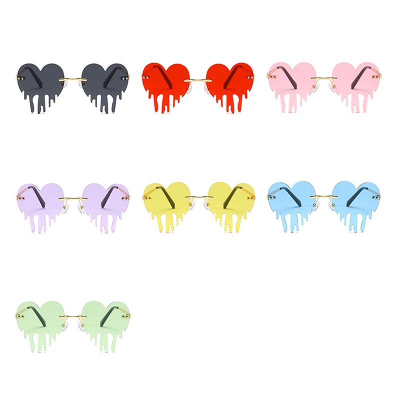 Модные солнцезащитные очки с цветными сердечками для женщин и мужчин, забавные праздвечерние чные солнцезащитные очки, женские большие металлические безободковые очки, очки для вождения