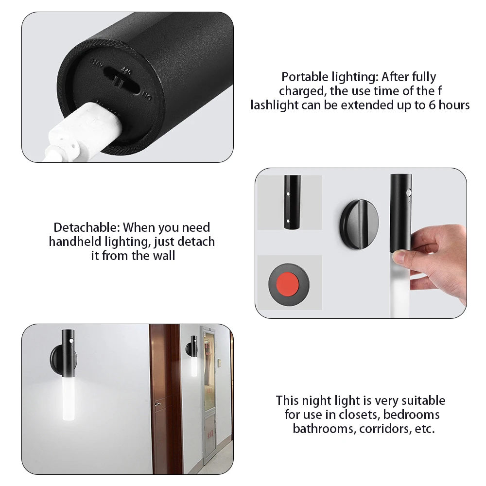 Характеристика:1. Портативное освещение: после полной зарядки время использования фонарика может быть увеличено до 6 часов.2. Датчик движения: при обнаружении движения в пределах 4 метров, Встроенный PIR датчик активирует яркий светодиодный, тем самым обеспечивая удобное и отзывчивое освещение без рук.3. Энергосбережение: если в течение дня имеется достаточный светильник, режим датчика будет автоматически отключен для повышения эффективности энергосбережения.4. Съемная: когда вам нужна ручная подсветка, вам нужно только отсоединить ее от стены.5. Этот ночной Светильник очень подходит для использования в шкафах, спальнях, ванных комнатах, коридорах и т. д.Опишите:1. Простая Магнитная конструкция, установка и свободное размещение.2. Режим ночного освещения, компактный энергосберегающий Ночной свет, мягкий свет не ослепляет, режим длительного освещения до 6 часов.Спецификация:Материал тени: акрилРабочее напряжение: 5 ВПринцип индукции: индукция человеческого телаДиапазон срабатывания: 4 метраТип источника: светодиодный светильникРазмер: высота 180*25 ммОбласть применения: гостиная, спальня, ванная комната, проход, балкон, крыльцо, гардеробФорма лампы: цилиндрическаяИсточник питания: 1 Вт светильникСветильник; Цвет: теплый белыйТип зарядки: USB зарядка, встроенный литиевый аккумуляторДлинный светильник: около 6 часовИндукционный режим: около ПолумесяцаСписок: ночной Светильник * 1